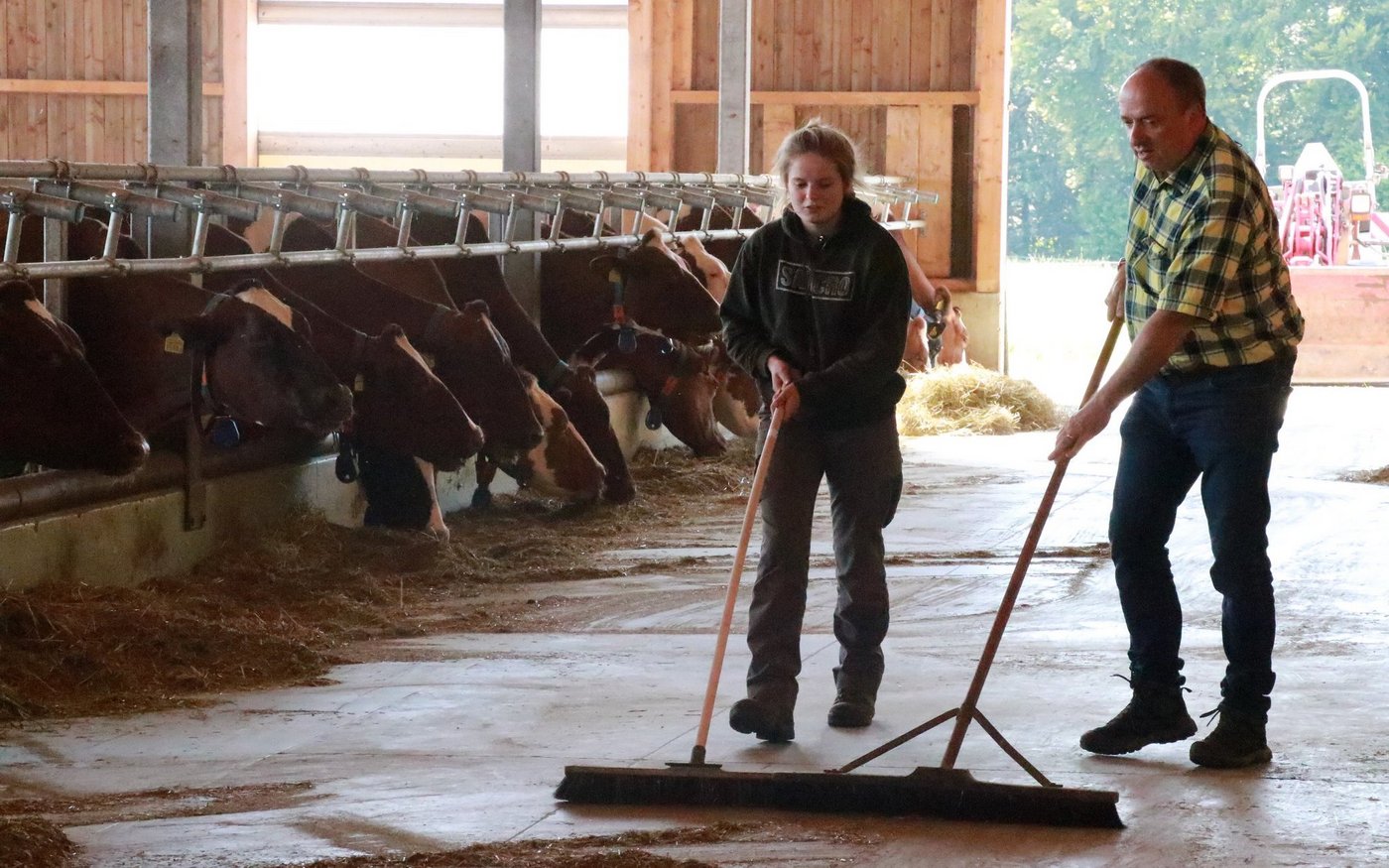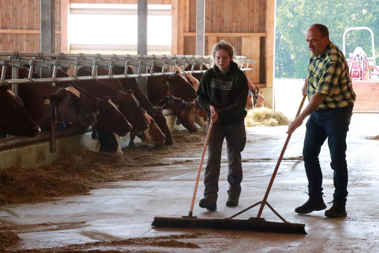 Unter den verschiedenen Gästen war auch der Aargauer Regierungsrat und Landwirtschaftsdirektor Markus Dieth. Am Mittwoch stieg er in die Arbeitsschuhe, füllte mit dem Hoflader die Futterkrippe der Milchkühe und wischte den Stallgang. «Jetzt gehen wir noch zäunen», gab Herbi Meier anschliessend die Devise durch und schickte den Regierungsrat nach Holzhammer und Locheisen.