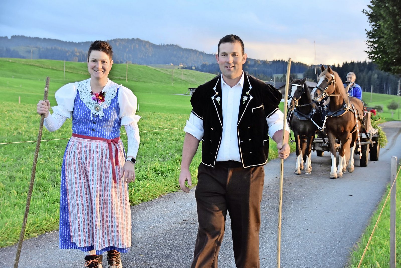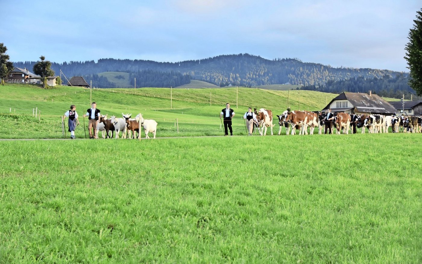 Von ihrem Heimbetrieb hörte man die Kuhherde schon von weitem kommen. Das Treichel- und Glockengeläut klang weit über den Knubel hinaus. Vorneweg am Zügeltross kamen zuerst die Kinder mit den Ziegen. Dann folgte die Kuhherde und am Schluss kam noch ein herrliches Pferdegespann mit Wagen.