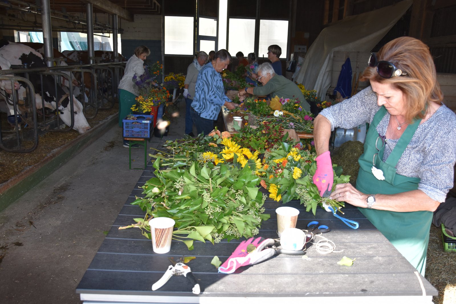 Der Schauplatz in Worben BE ist noch leer, aber die Vorbereitungen laufen auf Hochtouren. Die Kühe sind gewaschen und die Blumenkränze für den Alpabzug wurden sorgfältig hergestellt.