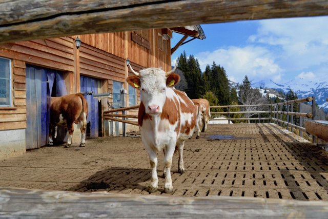 Schnee liegt noch auf den Bergen im Saanenland. Sanfte wärmende Sonnenstrahlen beleuchten die weissen Bergketten und lassen das langsam grünende Gras noch saftiger erscheinen.