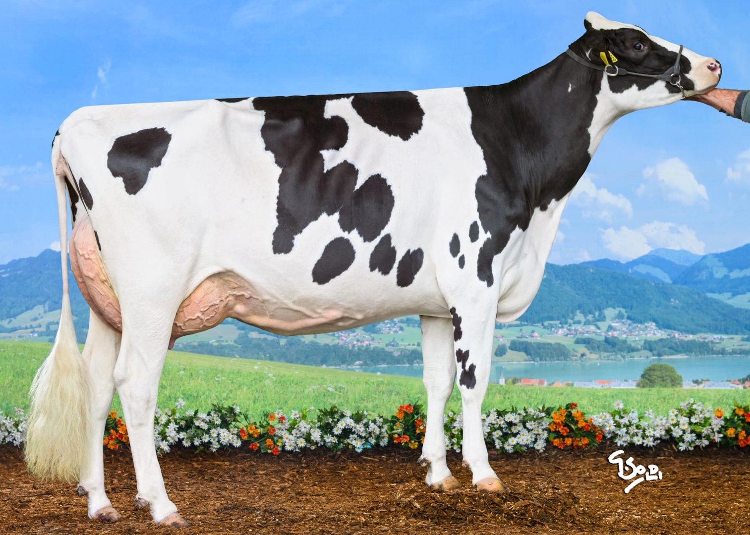 Schenkels Betrieb liegt im Aargau an eher rauer und schattiger Lage an der Grenze zum Kanton Zürich, mit Blick auf die Stadt und ins Limmattal. Vor zehn Jahren hat er diesen übernommen, 2020 einen neuen Rinderstall gebaut, mit dem Ziel, mehr Tiere aufzuziehen und zu verkaufen. Seit 2024 läuft ein Melkroboter im Milchviehstall. Erstmelken verkaufe er meist zwischen 3800 und 5000 Franken. Dabei biete er fast immer überdurchschnittliche Tiere zum Verkauf an. Ziel ist, «dass die Käufer zufrieden sind und das Präfix bekannter wird», so Milan Schenkel.