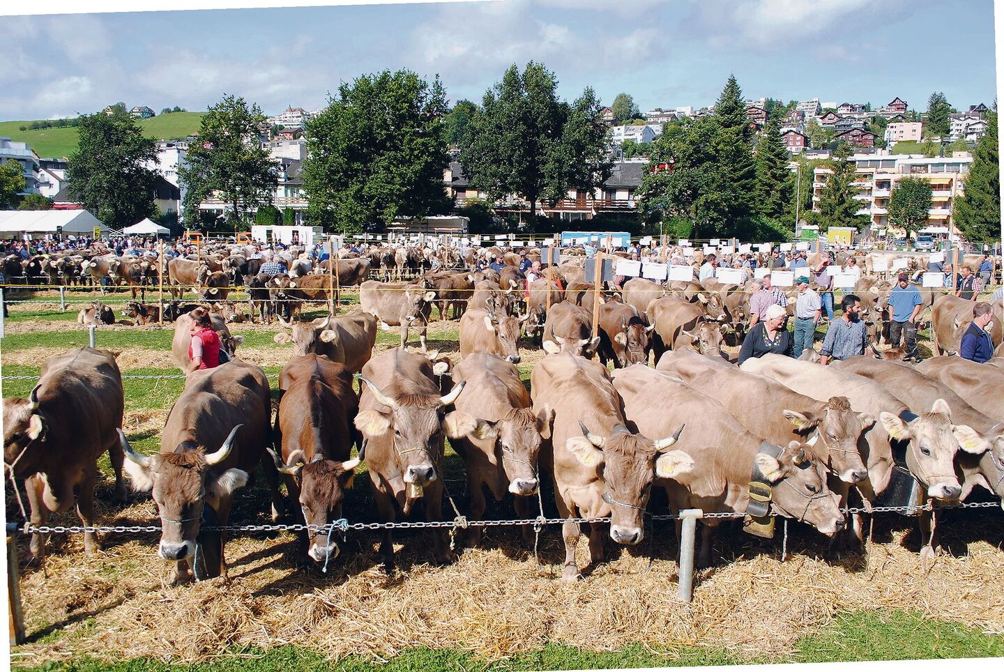 Fütterung und Nährzustand: Schon ein paar Wochen vor dem geplanten Schau- oder Verkaufsdatum schaut man sich die ausgewählten Tiere genauer an. Für eine optimale Präsentation sollten die Tiere nicht zu fett oder zu mager sein und allgemein ein gutes, fittes Erscheinungsbild aufweisen. Mit gezielter Fütterung von zum Beispiel mehr oder weniger Energie und genügend rohfaserreichem Futter erstrahlen etwa etwas magere Alpkühe in wenigen Wochen wieder in neuem «Glanz».