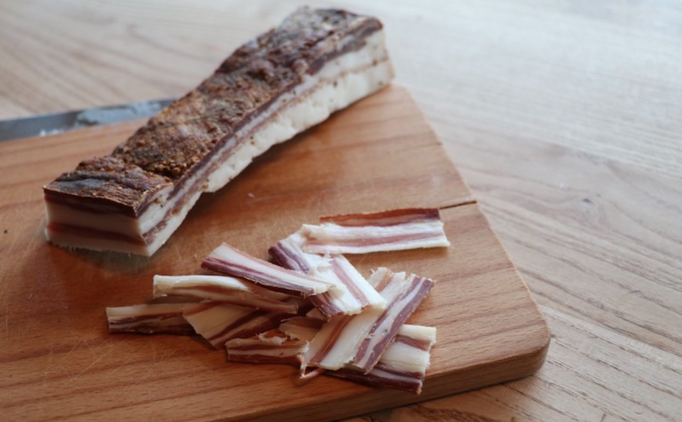 -- NO IMAGE --p>Susanne und Patrick Stalder lassen von einem Metzger in der Region aus dem Fleisch ihrer Alpenschweine Frischfleisch, Rohessspeck und Schinken produzieren. Die Produkte werden anschliessend über den Direktverkauf vermarktet – etwa 80 Kilogramm pro Jahr. Beim Speck fällt sofort auf: Der Fettgehalt ist um einiges höher als bei dem Speck, den wir sonst kennen. Das Alpenschwein-Fett hat eine ungewohnt feste Konsistenz und schmeckt fein nussig. Durch das langsame Wachstum der Tiere und die vielfältige Ernährung auf den Bergweiden entwickelt das Fleisch ganz andere Qualitäten als herkömmliches Schweinefleisch.-- NO IMAGE --/p>