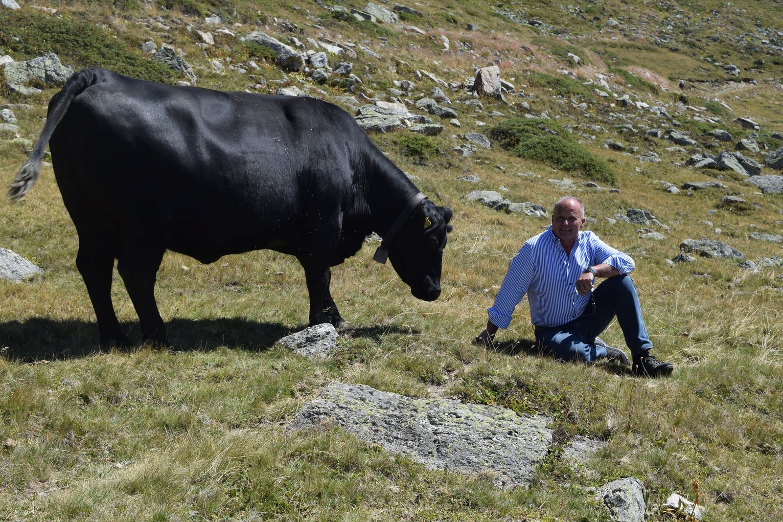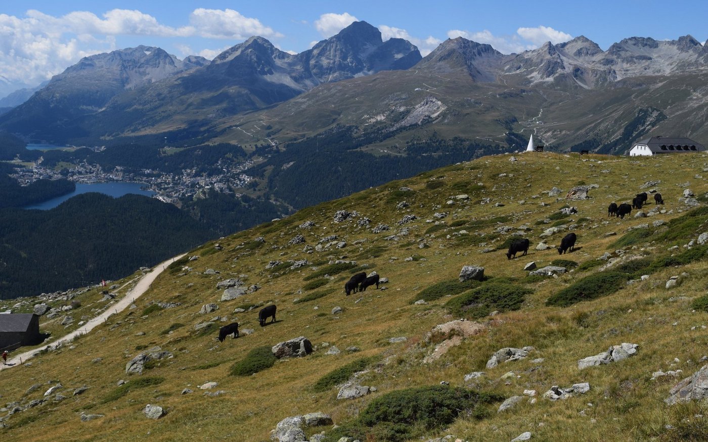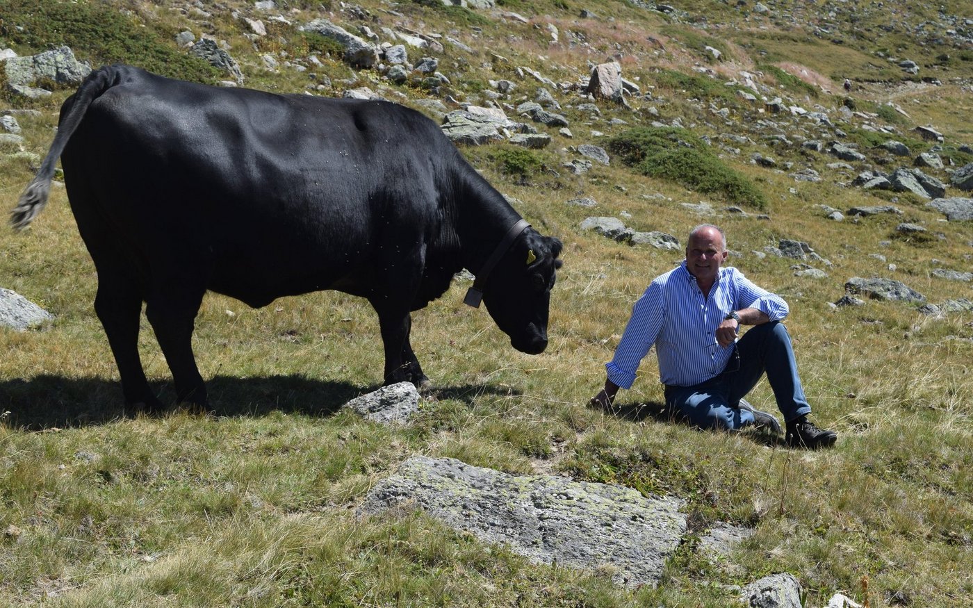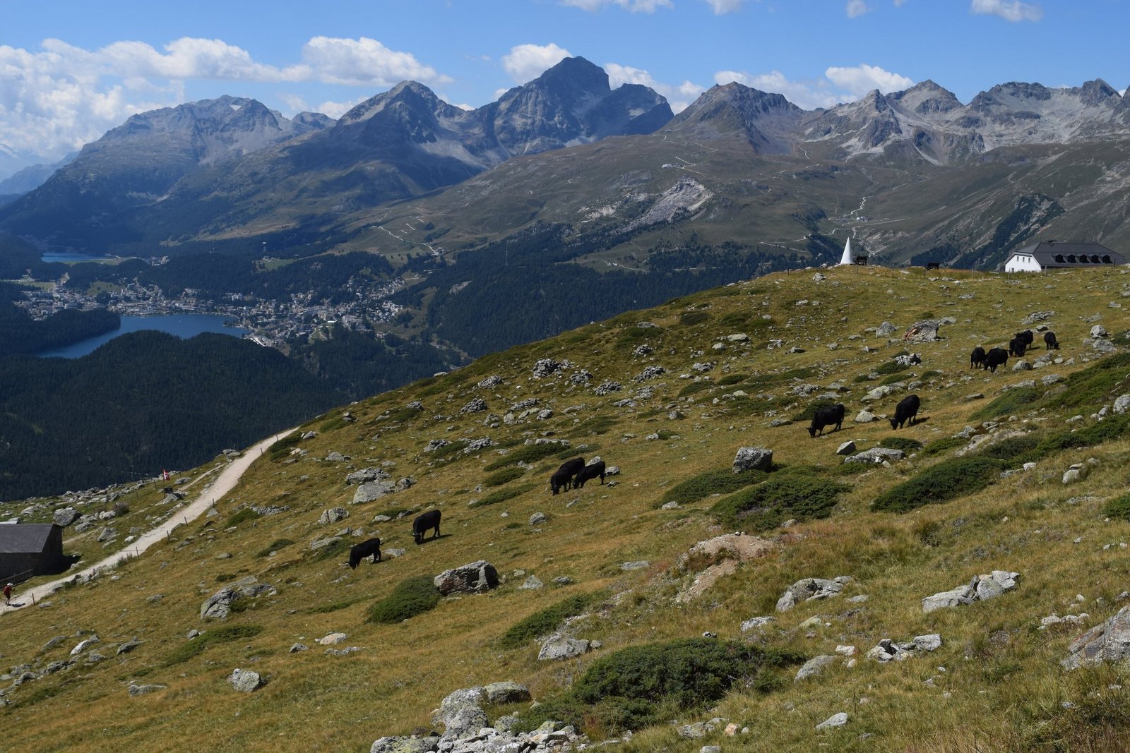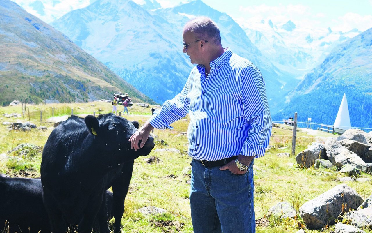 Der Ausblick von der Alp Muottas auf das Oberengadin und das Bernina Massiv ist eindrücklich. Auf 2500 m ü. M. verbringen die Angus Mutterkühe von Gian Peter Niggli den Sommer. Als die BauernZeitung Niggli Mitte August besucht, sind die Kühe noch auf der Alp. [IMG 5] Kühe und Kälber sind sich an Wanderer gewohnt Eine Gruppe Angus Kühe mit ihren Kälbern liegt wiederkäuend im Gras zwischen einem Wanderweg und der…