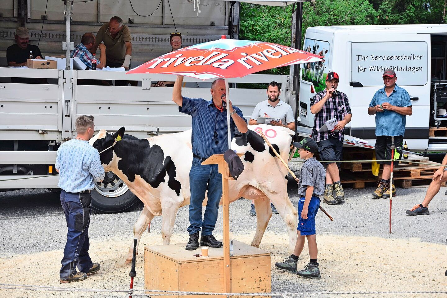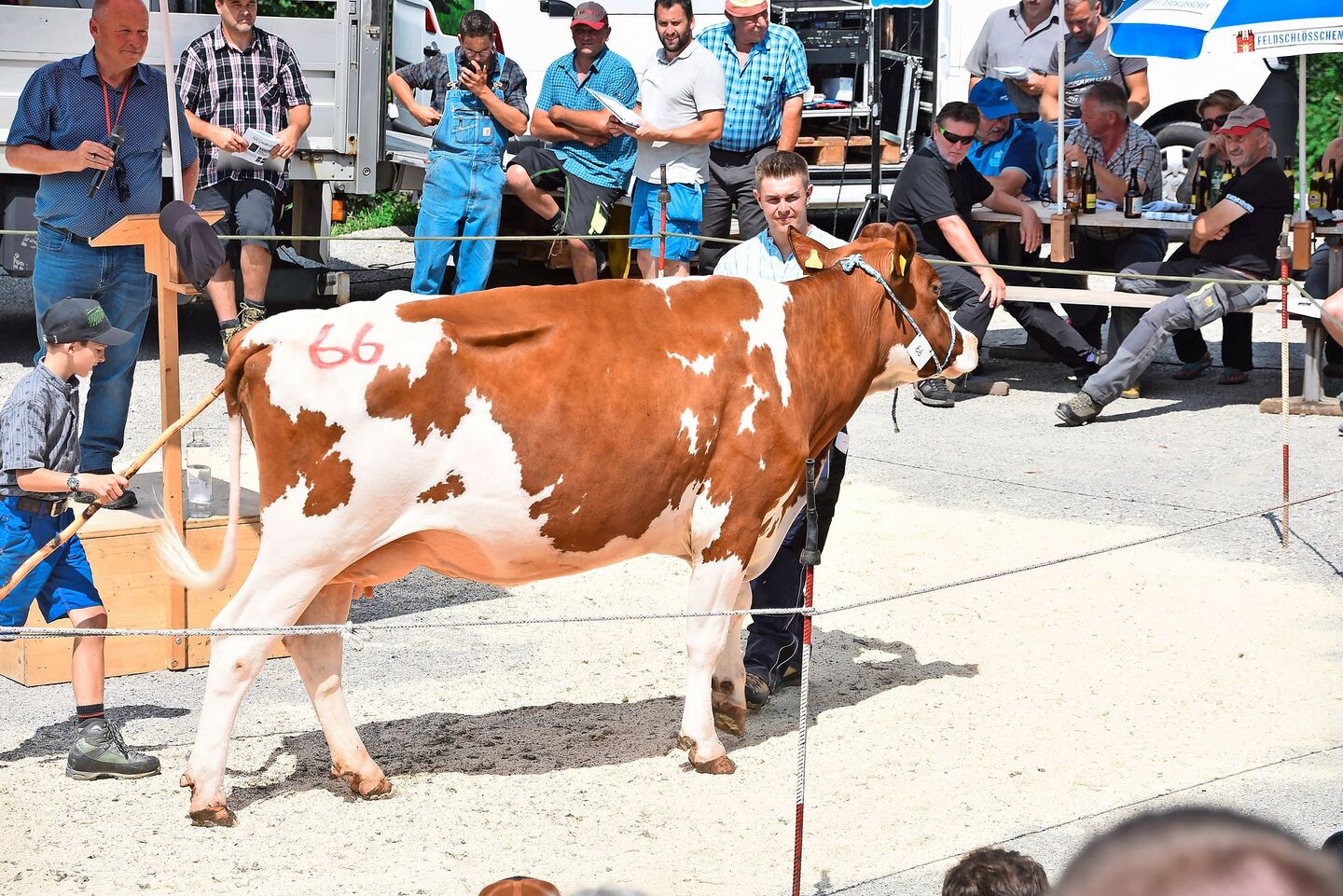 Den Höchstpreis löste dabei die wunderschöne SF-Kuh Anthony Leandra, angeboten von Hans Wenger, Zwischenflüh. Diese sehr exakte Zweitmelkkuh konnte Auktionator Andreas Aebi für 4800 Franken zuschlagen. Eine weitere SF-Kuh, die bestausgewiesene Rain’s Semino Alexa von Niklaus Neukomm, Horboden, löste 4750 Franken. Die verkauften Kühe lösten einen Durchschnittspreis von 4006 Franken. Die 22 Rinder für die Mutterkuhhaltung lösten den Durchschnittspreis von 4150 Franken.