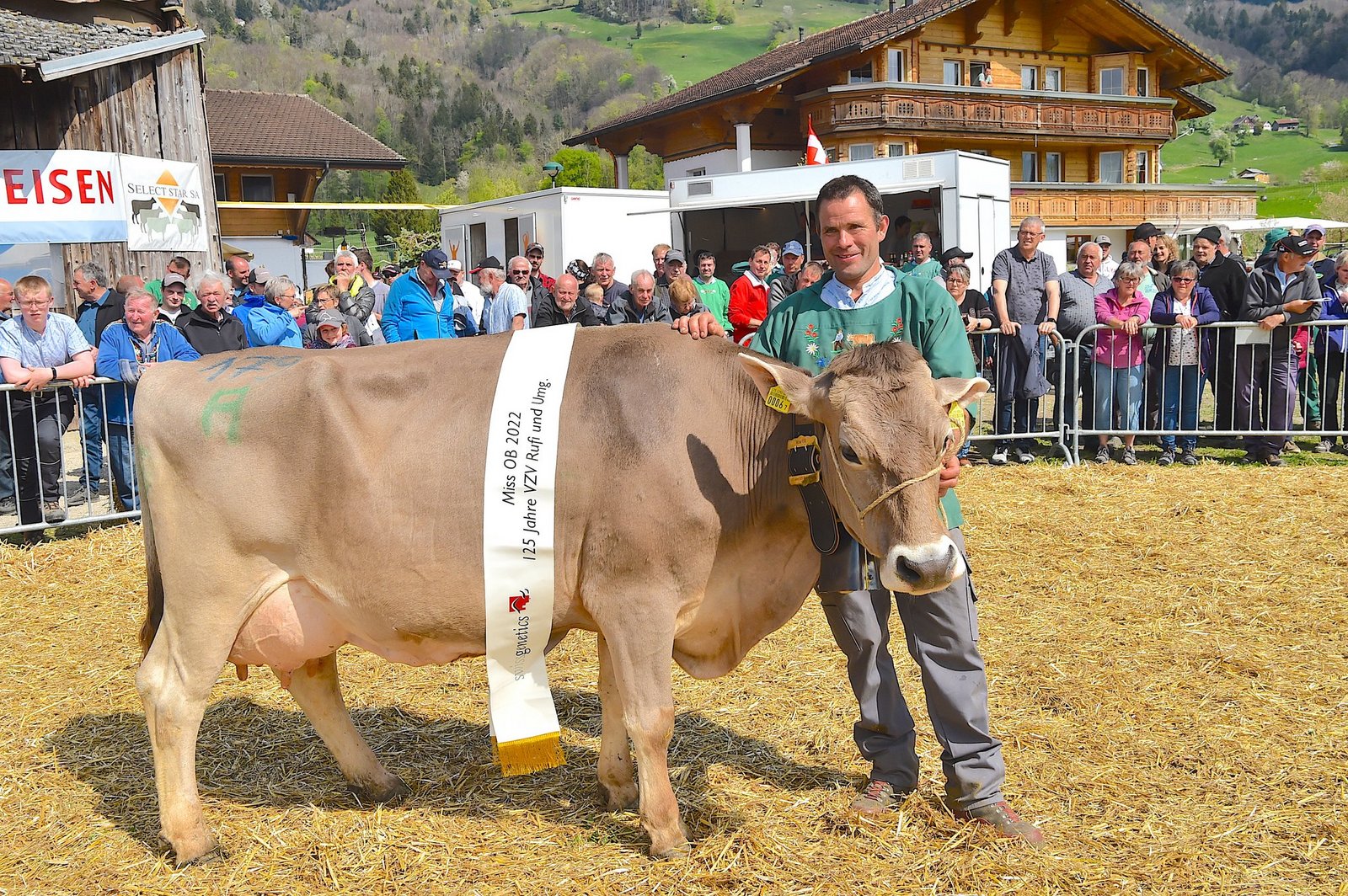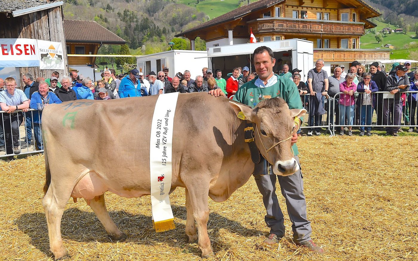 Die Jubiläumsschau 125 Jahre Braunviehzuchtverein Rufi und Umgebung ging bei sonnigem, aber windigem Wetter über die Bühne. Den wunderbaren Rahmen für diesen Anlass bildeten am Morgen bei der Auffuhr prächtig geschmückte BS- und OB-Tiere von zehn Zuchtbetrieben.