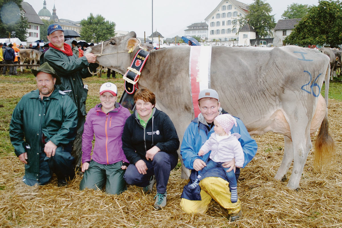 Die Spezialwettbewerbe wurden von Tieren aus dem Stall von Werner und Kevin Züger aus Vor-derthal dominiert. Seine Jery Zara gewann den Schöneutertitel in der jüngsten Kategorie und Tango Jola präsentierte das schönste Euter bei den ältesten Kühen. Damit jedoch nicht genug. Die Fünftmelkkuh vermochte sich ebenfalls bei der Misswahl durchzusetzen und konnte den Vorjahressieg für den Betrieb Züger verteidigen. «Sie überzeugt mich mit ihrer Tiefe und extremen Kapazität, dem feingliedrigen Fundament und natürlich dem nahezu perfekten Euter», freute sich der Kernser Viehschauexperte Walter Windlin. Zur Vizemiss kürte er die Drittmelkkuh Alasko Natalia von Paul Diethelm, Siebnen, welche sich zuvor bei den Schöneuterwahlen nur von Mike Siera von Kurt Dobler, Siebnen, geschlagen geben musste. Der dritte Gesamtrang ging an die junge einheimische Blooming Rebeka aus dem Stall von Richard Ziegler, Galgenen.