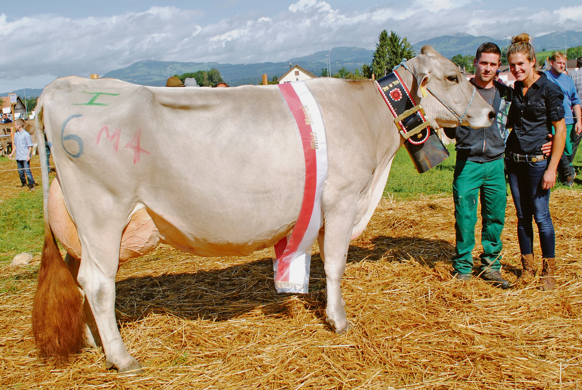 Beim Original Braunvieh durfte die BG Schönbüel mit ihrer Gold Gloria den Misstitel in Empfang nehmen. Die harmonische Kuh in zweiter Laktation konnte sich gegen die neue Schöneutersie-gerin Monti Bianca von Erwin Marty, Lachen, durchsetzen. Bereits vor einem Jahr erreichte die Sechstmelkkuh bei den Misswahlen einen Podestplatz.