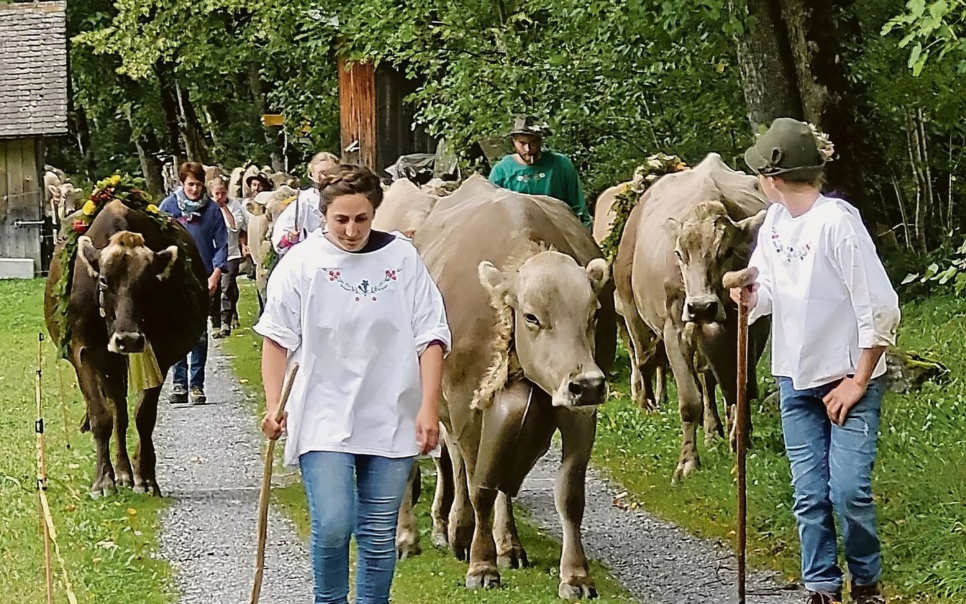 Lange bevor man die bunt geschmückte Herde sieht, hört man sie: Im Gleichklang ertönen die Schellen. Andächtig durchschreiten sie das Dorf, bis der farbige, laute Zug das Ziel am Dorfrand die zu Martis Betrieb gehörenden Weiden im Unterbach erreicht. Wohlverdienter Weidegang Zufrieden strahlen alle Helfer, während sie den Tieren Schmuck und Glocken für den wohlverdienten Weidegang entfernen. Ruth Marti führt die…