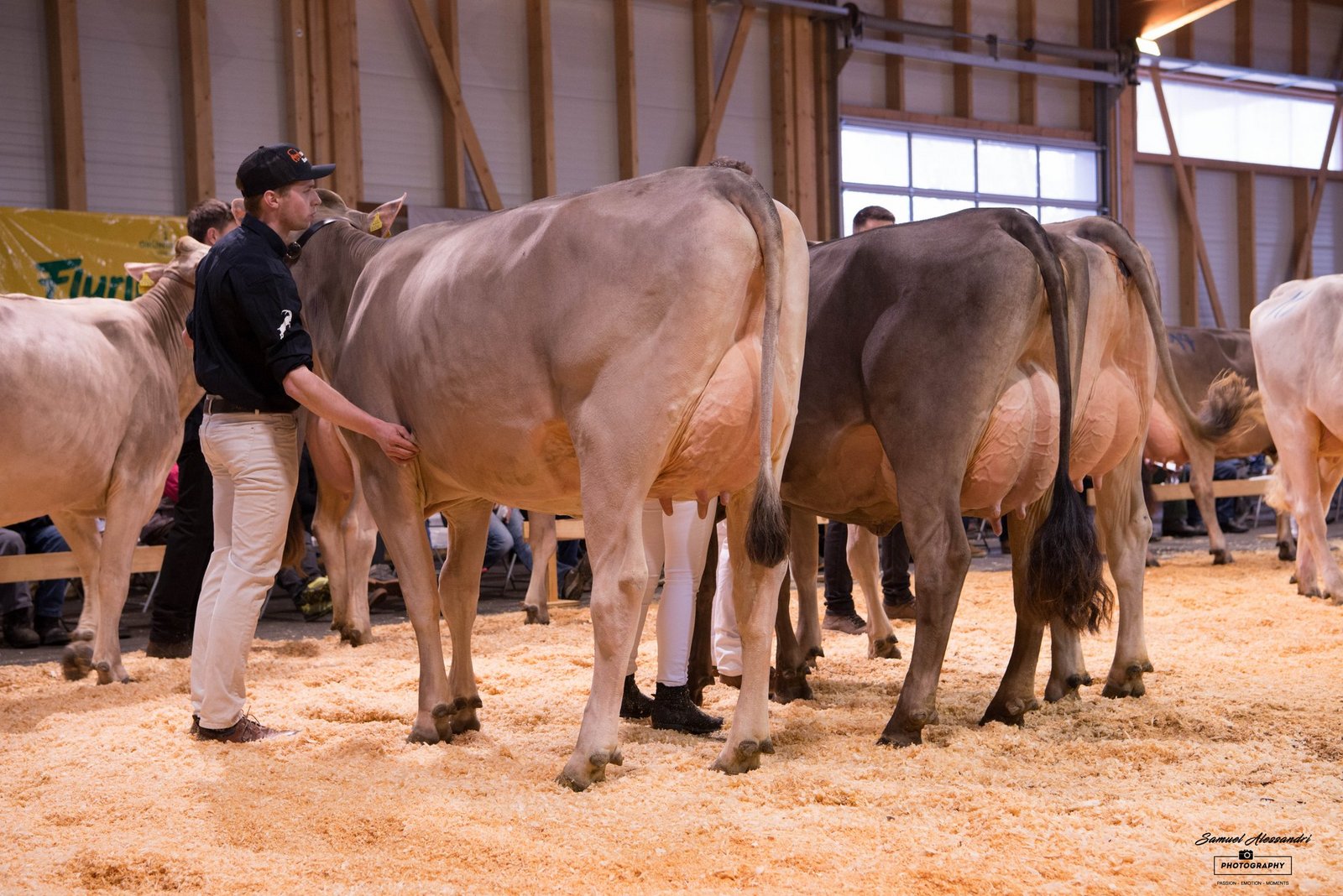 Richter Florian Pfulg schaute sich die Kühe genau an. Er reihte sie zielstrebig ein, liess sie nochmals an sich vorbeiziehen, stellte ab und zu eine Kuh weiter nach vorne oder nach hinten ein. Sein Bruder, Stefan Pfulg, half den Vorführern als Ringman, die Kühe wieder richtig einzureihen. Florian Pfulg sprach immer wieder begeistert von der hohen Qualität der aufgeführten Kühe. Aus den Abteilungen wählte er jeweils seine Favoritinnen für die Champion-Wahl und die Schöneuter-Wahl.