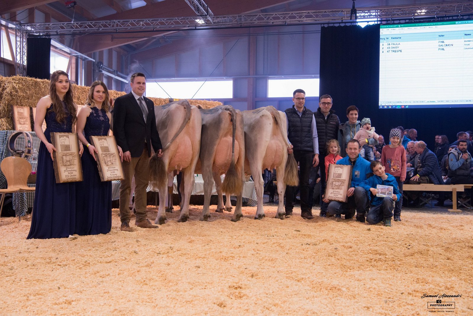 Kurz vor Mittag traten die jüngeren Kühe zur Schöneuter-Wahl an. Hier wählte der Richter Phil Trespe von Edwin und Regula Casanova zur Miss Schöneuter, vor Freudenbergs Salomon Hermine von Georg Florin. Dritte wurde Phil Paula von Guido Bucheli-Caduff. Diese Kuh holte sich den Junior-Champion-Titel. Als Vize-Champion ging Salomon Daisy von Erwin Arnold aus dem Ring, Dritte wurde Phil Trespe von Edwin und Regula Casanova.