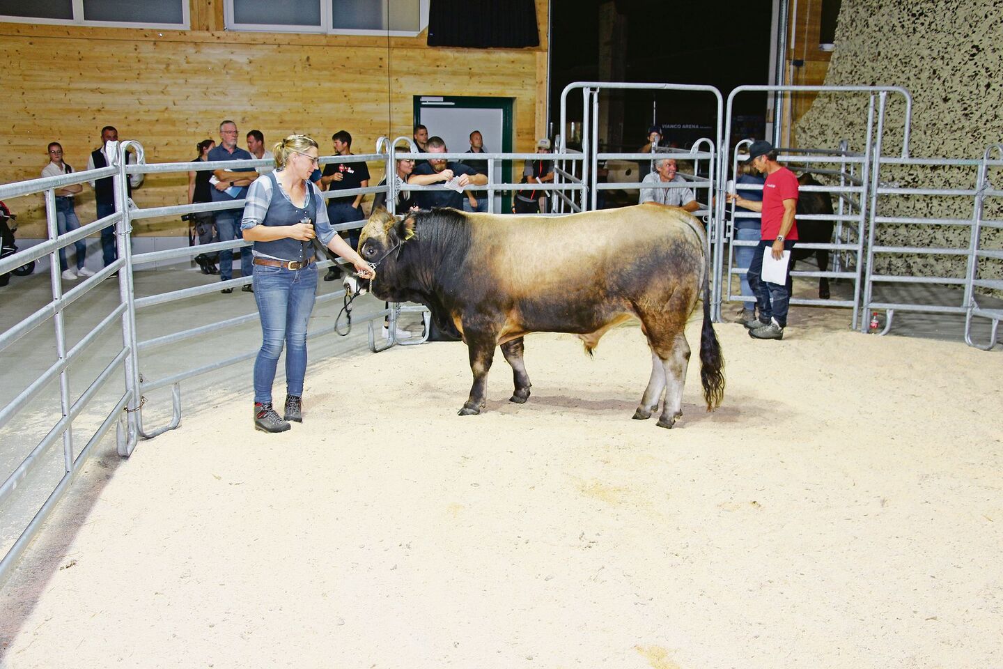 Der 14 Monate alte und 624 kg schwere 3D Crabbe vom Züchter Hervé Despond weist eine beachtliche Widerristhöhe von 130 cm auf. Er wurde am Aktionstag mit 90 Punkten in Format und Bemuskelung, 91 im Fundament und 90 Punkten in der Synthese beurteilt. Vor der Auktion wurde er zum Champion der anwesenden 17 Angus gewählt. Der Auktionator Urs Jaquemet startete die Auktion bei Fr. 4800.–, und rasend schnell kletterte der…