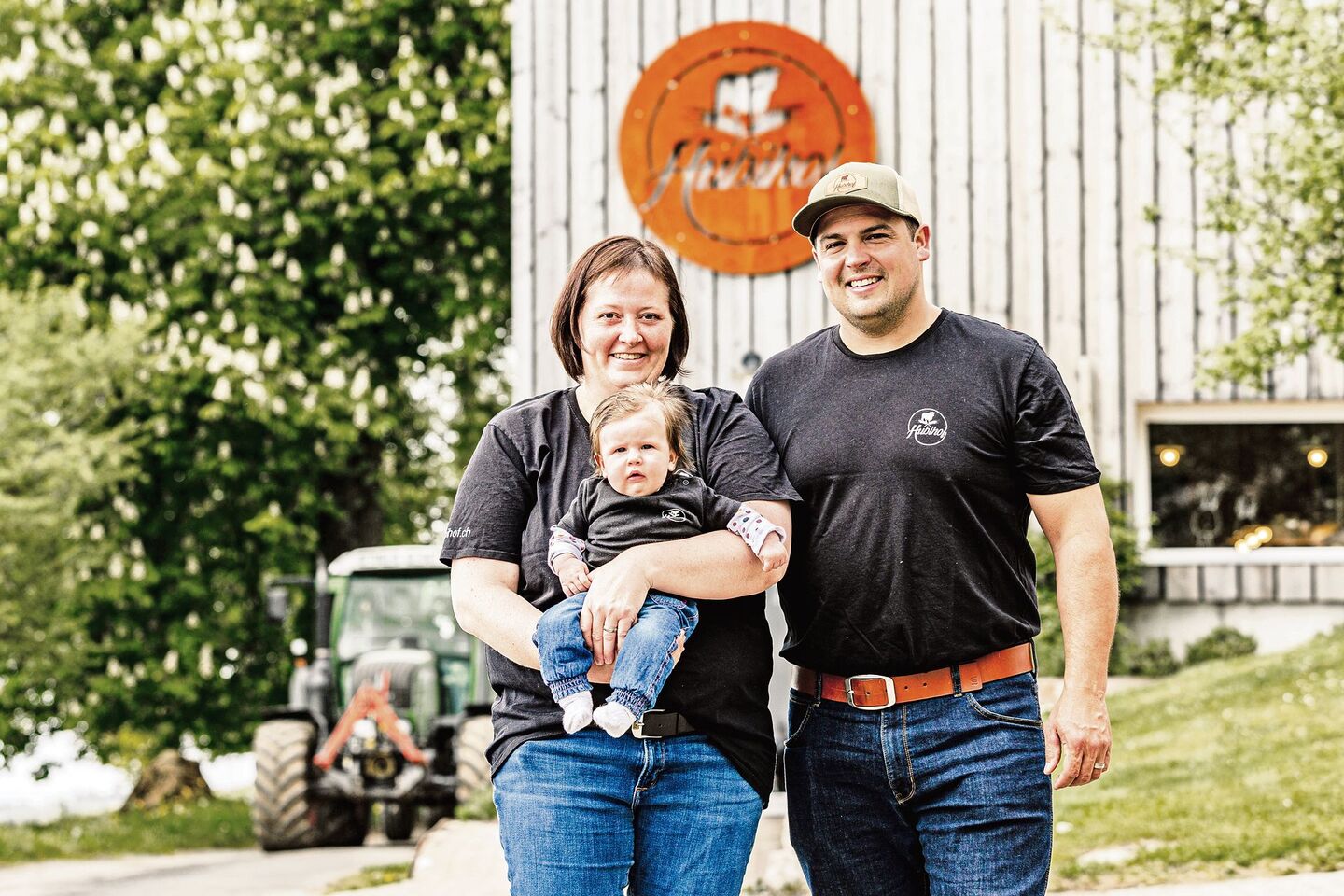 Das Eggen der Liegefläche nimmt täglich 10 bis 15 Minuten Zeit in Anspruch, die Kühe sind währenddessen im Fressgitter. Der Tierarzt ist auf dem Hubihof ein seltener Gast. «Unsere Tiere haben keine Gelenkprobleme und genug Platz, um einander auszuweichen», gibt der Landwirt zu bedenken. Das Gehen auf der tiefen Einstreu fordert die kurzbeinigen Angus und Wagyu im positiven Sinn, denn sie sind dadurch gut bemuskelt. Zudem sind die Tiere sauber, da die Einstreu nicht klebt. Bei frisch geborenen Kälbern sieht das anders aus, was der Grund ist für das Stroh in der Abkalbebox.