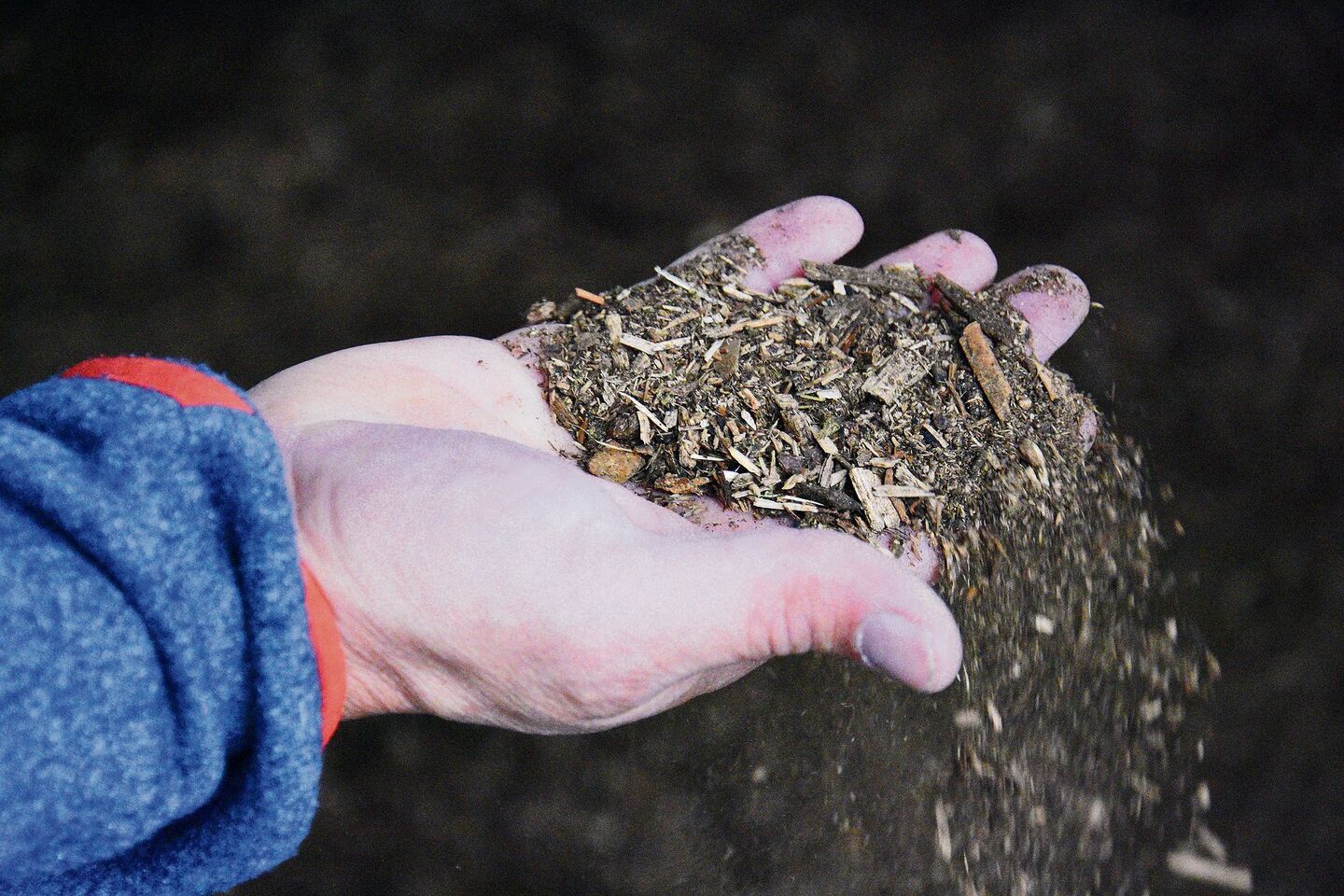 «Man muss mit dem Material arbeiten, es lebt», hält Gehrig fest. Je nach Wetter und Jahreszeit variiert er die Mischung. Täglich wird die Einstreu mit der Egge 20 cm tief gelockert, Kot und Urin untergemischt. Etwa alle zwei Wochen kommt der Grubber zum Einsatz für eine Durchmischung bis auf 50 cm, nach Bedarf wird nachgefüllt und einmal im Jahr die ganze Fläche geräumt. «Das machen wir im September nach der Getreideernte», erklärt der Landwirt. Der Kompost sorge für einen hohen Phosphorgehalt, weshalb bei jungen Pflanzen Vorsicht geboten ist.