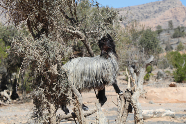 Der karge und schroffe Canyon bietet vielen Ziegen und einigen Schafen eine Lebensgrundlage. Die wenigen Sträucher und Bäume reichen aus, damit sich die Tiere ernähren können. Auf den Hinterbeinen stehend, kommen sie sogar an die oberen Blätter des Buschwerks.
