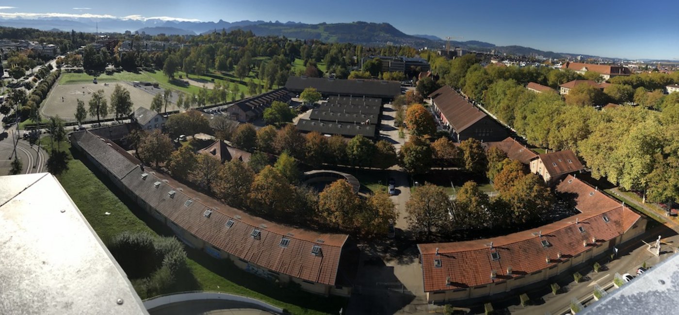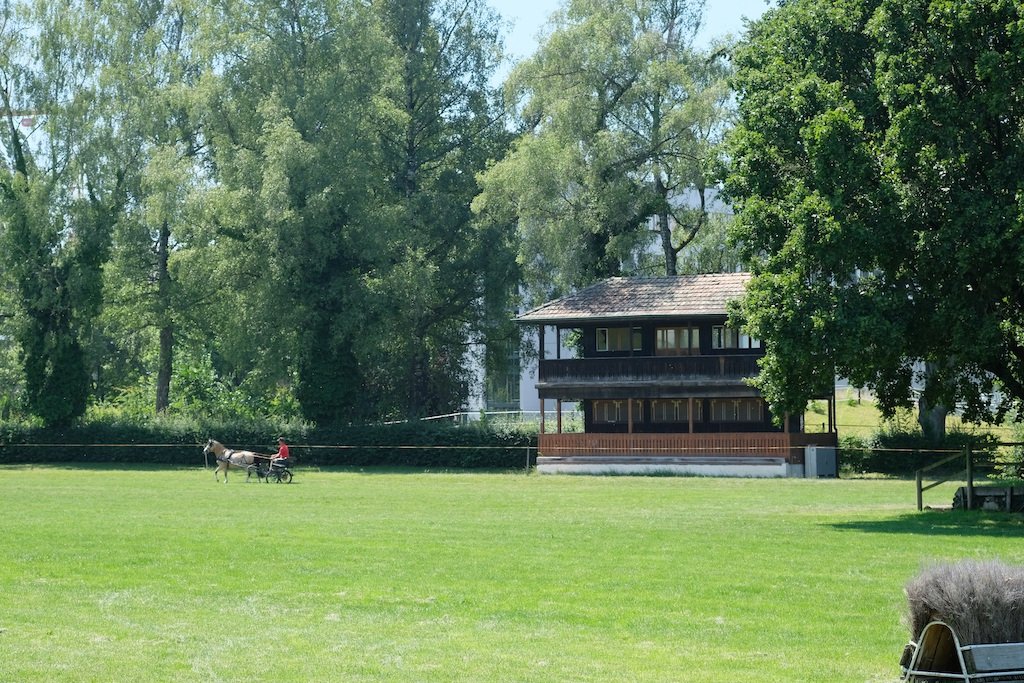 In der historischen Anlage des Nationalen Pferdezentrum in Bern sind derzeit durchschnittlich 140 Pferde zuhause, die heute im Springgarten weiden und trainieren können. (Bild NPZ)