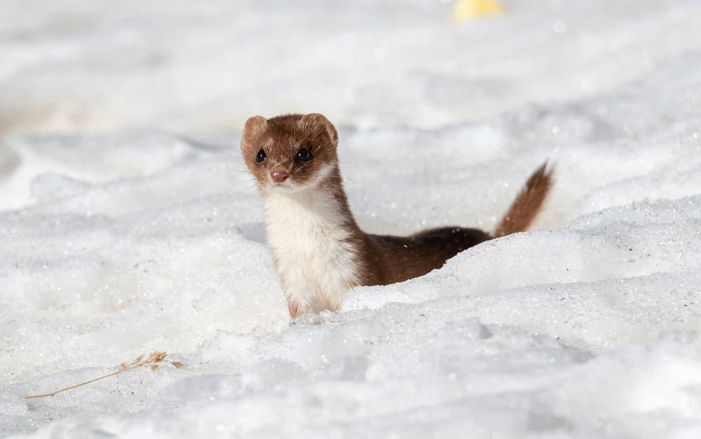 Als kleinster Beutegreifer der Schweiz ist das Mauswiesel nicht viel schwerer als die Wühlmäuse, von denen es sich ernährt. Und somit ein guter Gehilfe für Landwirt und Landwirtin - doch das Verbreitungsgebiet des Mäusefängers nimmt ab. Deshalb wurde es in der Roten Liste der Säugetiere als gefährdet eingestuft. Die Rote Liste gibt laut Bafu Auskunft zum Risiko, dass Arten aussterben könnten und signalisiert, dass es Massnahmen braucht, um die Art zu schützen und zu fördern. Dafür braucht das Wiesel vielfältige Landschaften mit Versteckmöglichkeiten. [IMG 3]