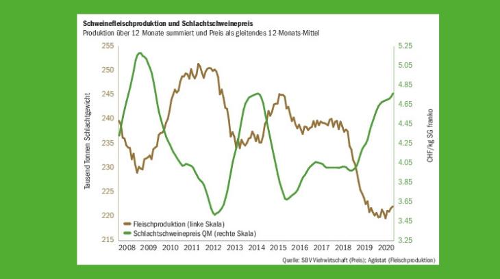 2020 war ein gutes und rentables Jahr für die Schweinehalter, daran ändert auch der Preissturz seit November von Fr. 4.60 auf aktuell Fr. 4.10 nichts mehr. Dieser Produzentenpreis bezieht sich auf ein Kilo Schlachtgewicht (SG) für Schweine ab Stall, welche die Grundanforderungen von QM (Qualitätsmanagement) Schweizer Fleisch erfüllen. 2020 lagen die Durchschnittspreise mit Fr. 4.53 um 19 Rappen höher als 2019. Dazu…