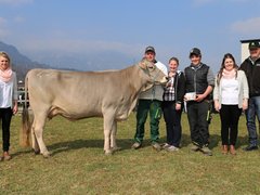 Beim Braunvieh setzte sich die rahmen- und euterstarke Kuh Lilli Lou von Hansueli Jakober-Gasser, Ramersberg, durch. Sie siegte im vergangenen Herbst bei den Galtkühen. Das schönste BV-Rind war Holdrio-Tochter Hanna von Stefan Kathriner, Stalden.