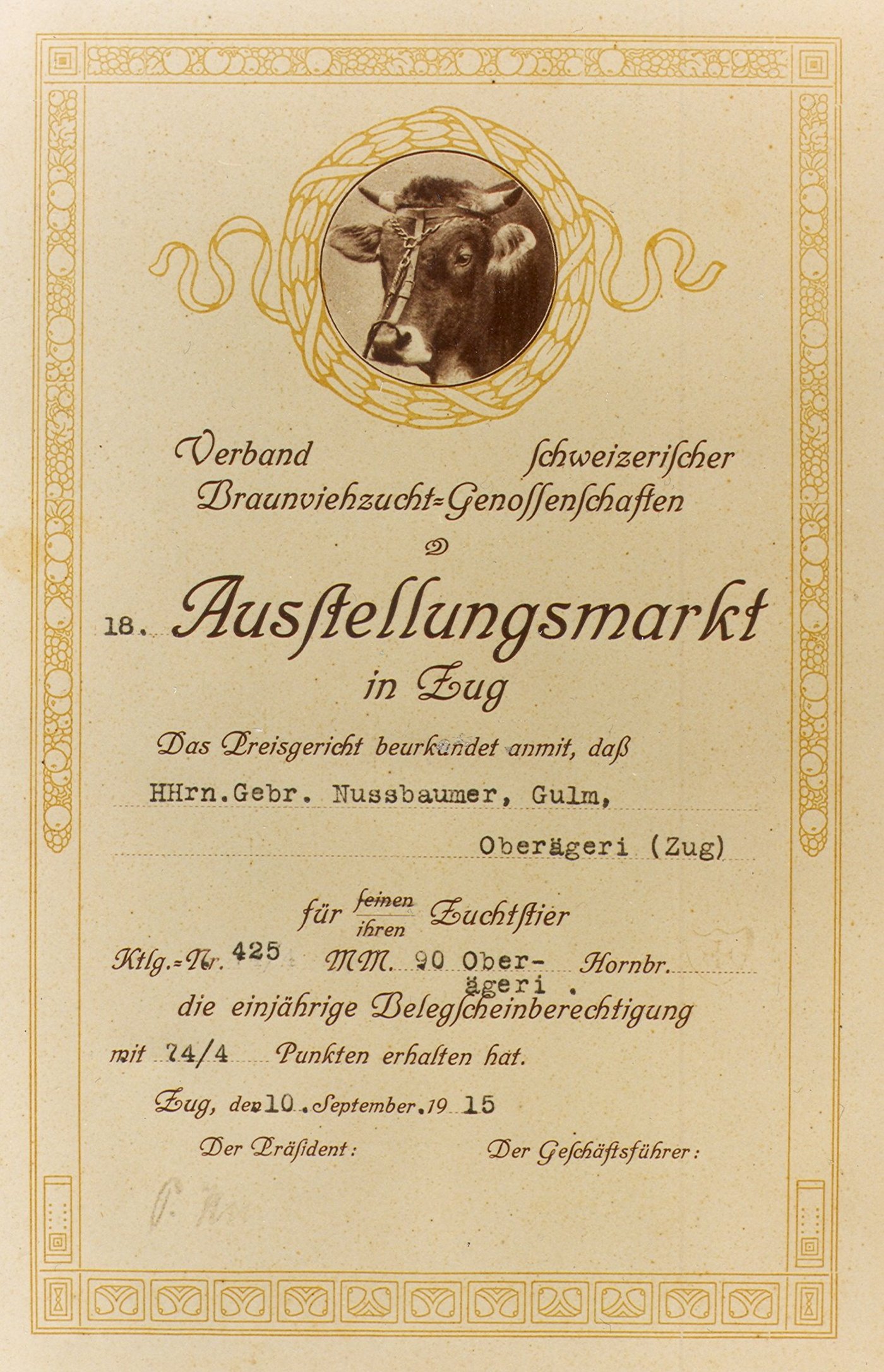 Unzufrieden mit diesem Resultat traten die meisten Genossenschaften aus dem Kanton St. Gallen im Laufe des Jahres aus und gründeten einen Konkurrenzverband unter dem Namen «Kantonalverband St. Gallischer Braunviehzuchtgenossenschaften» mit einem Stierenmarkt in Rapperswil.[IMG 5]