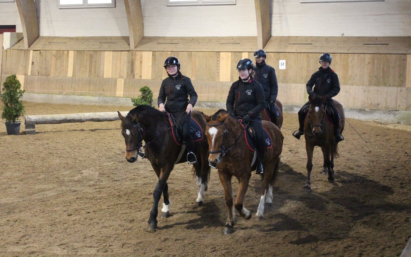 Die tägliche Reitarbeit der Pferde wurde von einer Quadrille präsentiert. Auch die Maultiere erhalten eine reiterliche Fortbildung. Die Ausbildung unter dem Sattel umfasst laut NPZ: Abteilungsreiten, einfache Dressurarbeiten, Cavalettis, kleine Sprünge über Baumstämme und Ausritte im Gelände. Nicht nur die physische Schulung werde mit dieser vielseitigen Schulung gefördert, sondern auch die mentale Belastbarkeit der Trainpferde.