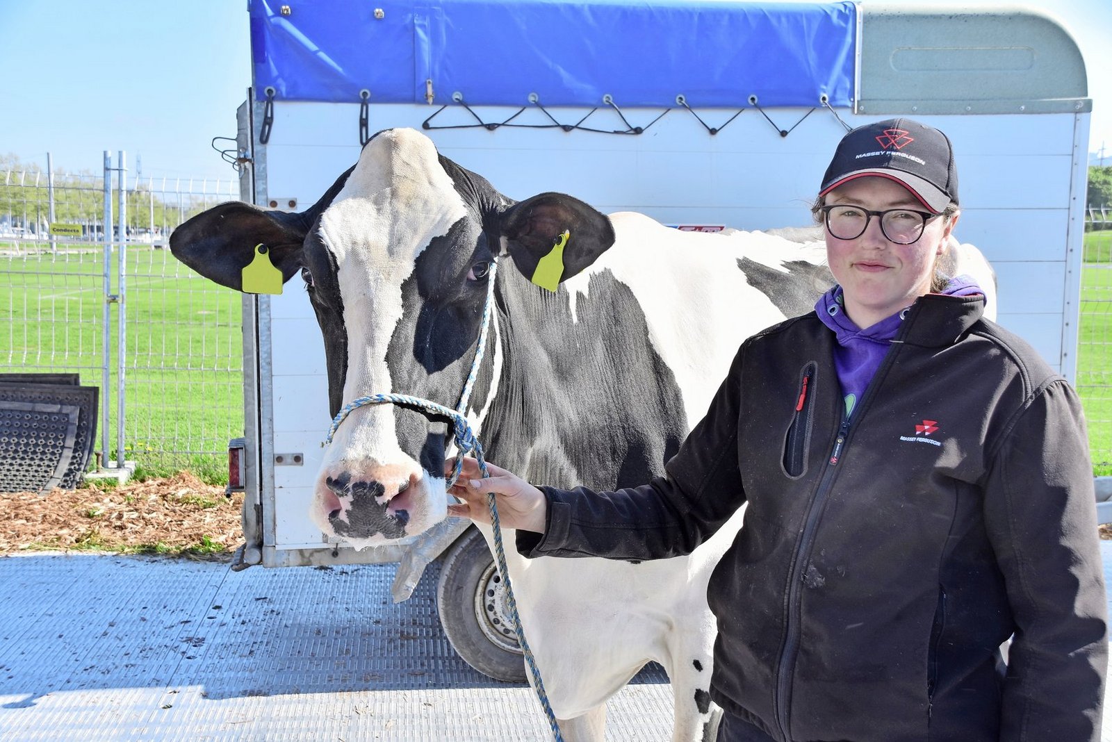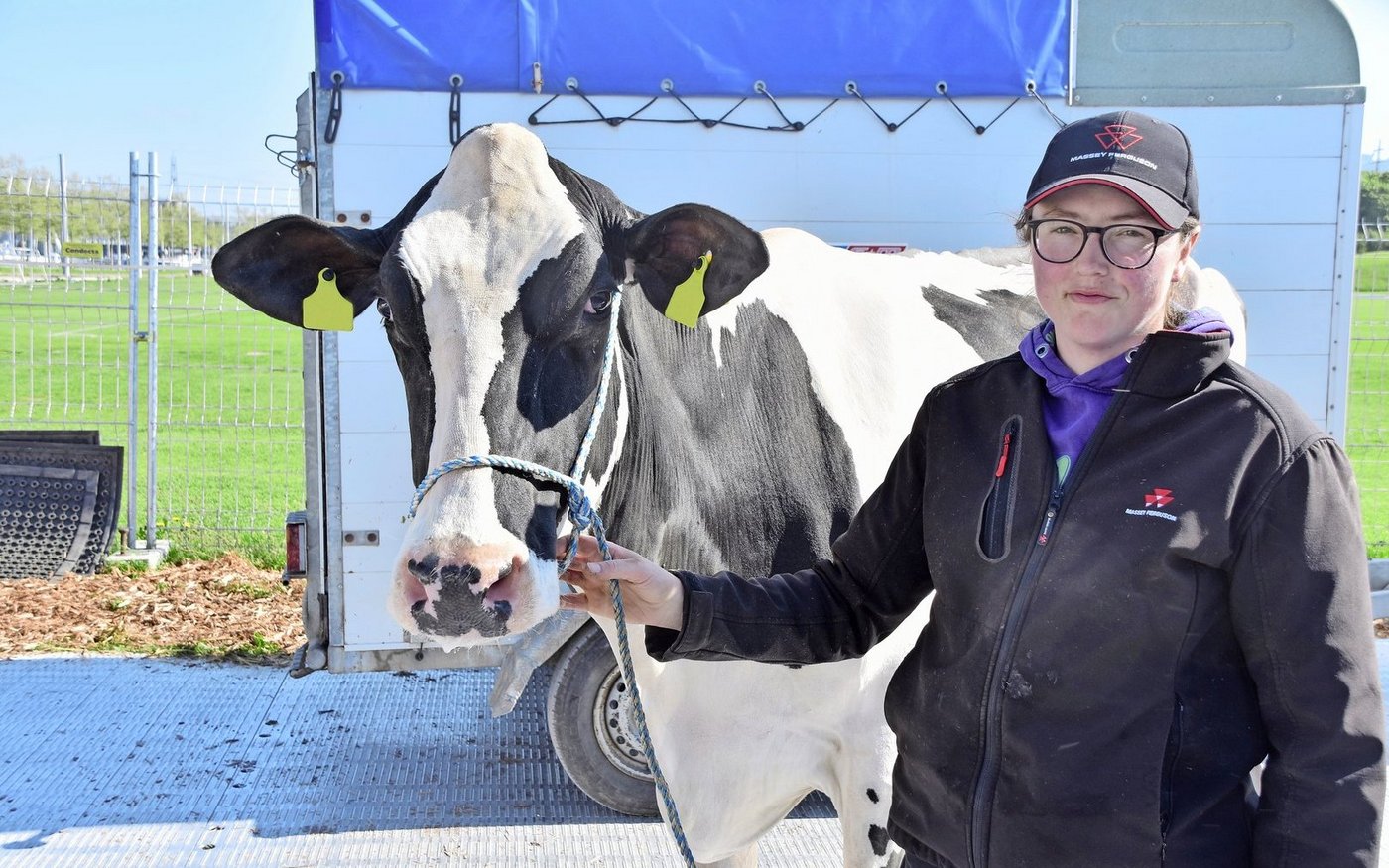 Zum ersten Mal mit einer Kuh an der BEA ist Therese Wyss aus Rüegsbach. Am Halfter führt die junge Frau die Kuh mit dem speziellen Namen WhiteHouse A2p2 U2 P. Diese hornlose Holstein-Erstlingskuh überzeugt mit ihrem gewaltigen Rahmen mit einem sauberen Fundament.