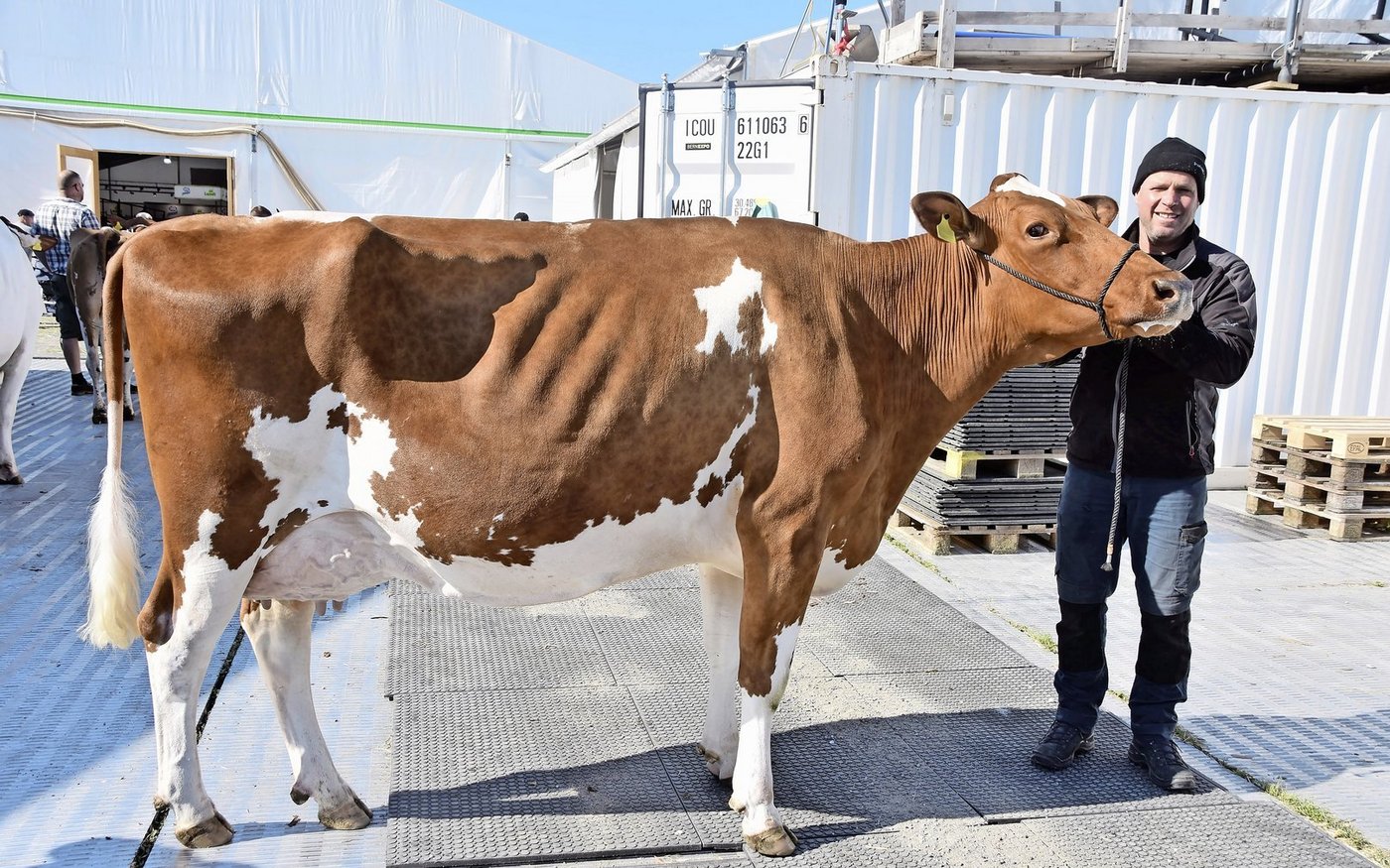 Sira wurde diesen Frühling mit 54 55 97 punktiert und steht frisch in der fünften Laktation. Die typstarke RH-Kuh, mit ihrem wunderbaren Euter, zog in Bern alle Blicke auf sich.