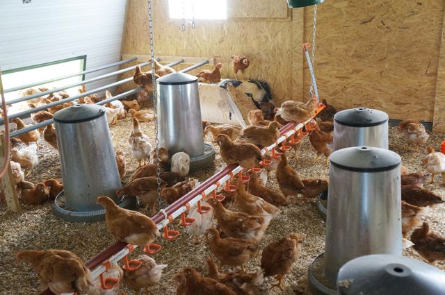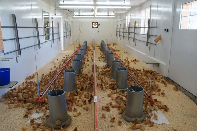 Bis die ersten Küken Einzug halten konnten, brauchte es allerdings einige Anstrengungen. Zuerst galt es, einen geeigneten Vormaststall einzurichten. Dafür musste ein Teil der früheren Pferdeboxen herhalten. Besonders daran ist nicht nur, dass Tobias Leutenegger mit vielen Helfern die Planung und die meisten Bauarbeiten selber übernommen hat. Besonders dürfte auch die Steuerung sein. „Ein Bekannter hat mir eine Anlage gebaut, mit der ich alle wichtigen Funktionen per Computer steuern kann”, sagt er. „Heizung, Lüftung, Licht usw. reguliere ich per Stick.” Einzig die Fütterung und einige wenige weitere Arbeiten erfolgen von Hand, inklusive natürlich der Überwachung der Tiere, die mehrmals täglich nötig ist. Handarbeit sind und bleiben zudem das Ausmisten und die Reinigung.
