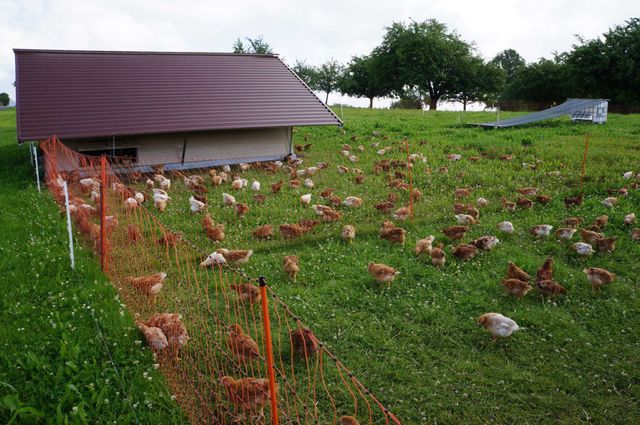 Das bestätigen die vielen Passanten, die mit Neugier das Haltungssystem beobachten und nach einigen Erklärungen erfreut sind über die tierfreundliche Haltung der Hühner. Obwohl also grundsätzlich alles rund läuft, planen die beiden bereits einige Anpassungen, Veränderungen und vor allem Verbesserungen der Abläufe. Eine davon betrifft die Fütterung. „Das Futter jeweils in die Futtertöpfe in den Ausmastställen zu tragen, ist sehr aufwendig und anstrengend. Deshalb überlegen wir, wie wir diesen Bereich effizienter gestalten könnten.” Auch den Abtransport des Hühnermists wollen sie noch optimieren. Grundsätzlich aber ist ihr Schritt in die Zukunft gelungen.