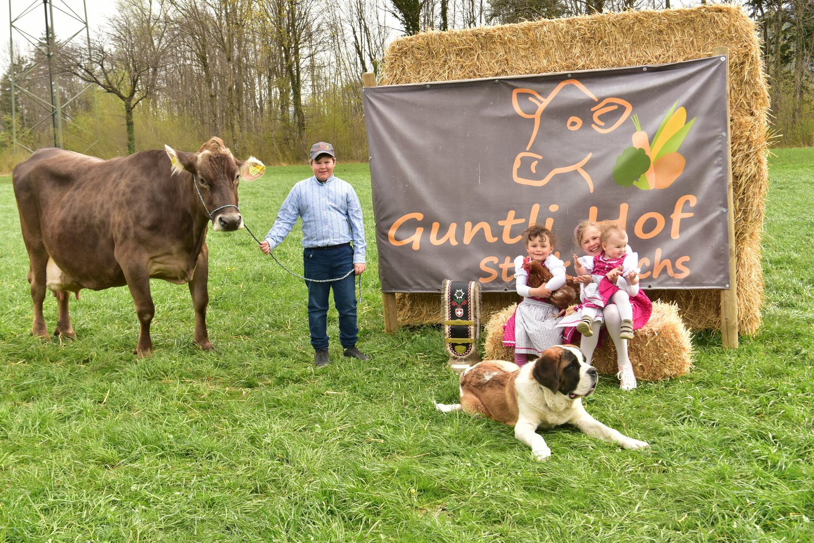 Andreas Guntli setzt bei seinen Tieren auf Langlebigkeit, auf Qualität und auf Leistung, wie er es von seinem Vater gelernt hat. Ausser den Kühen leben zehn Pensionspferde, Ponys, drei Ziegen und Hühner auf dem Betrieb Guntli. Die Hälfte der Landwirtschaftlichen Nutzfläche von 25 Hektaren wird für den Ackerbau genutzt. Guntli produziert auf diesen Parzellen Rüebli, Kartoffeln, Spinat, Blumenkohl, Kürbis und Spargeln.