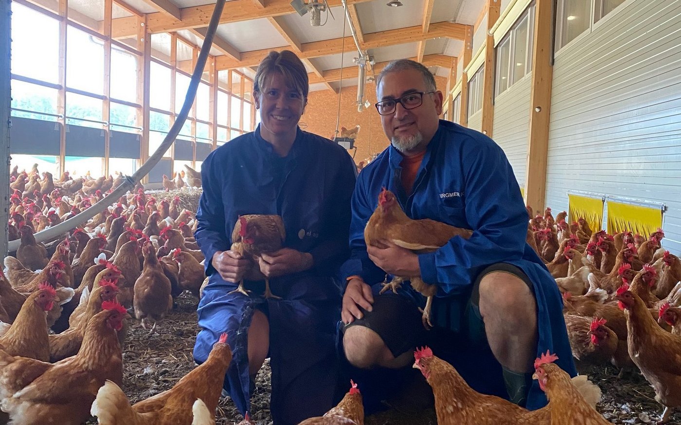 [REL 1]Auf der Weide am Waldrand tummelt sich zufriedenes braunes Federvieh, pickt und scharrt. «Ich werde die Herde vermissen», hält Tobias Affentranger mit Blick auf das Treiben fest. Bald werden die 2000 Legehennen ausgestallt. Es war die erste Herde von Nadine und Tobias Affentranger-Widler auf dem Lindenhof. Im Juli vor einem Jahr konnten die Bioproduzenten aus Jonen AG ihren neuen Stall in Betrieb nehmen. Rass…