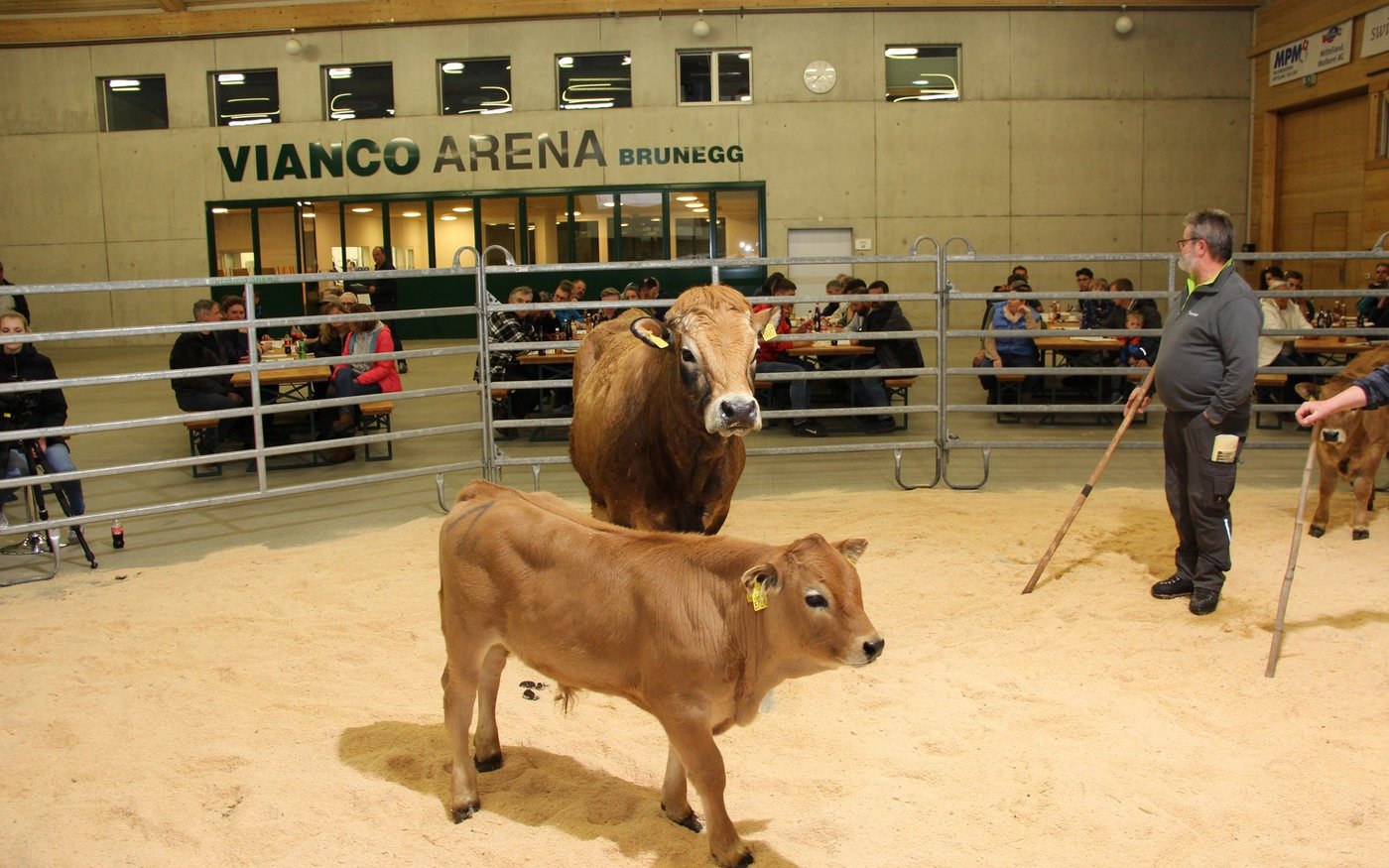 Endlich, nach zwei Jahren konnte die Fleischrinder-Auktion der Rassenclubs ohne Zertifikate, Gesichtsmasken und ohne Abstandsregeln durchgeführt werden. Der Besucheraufmarsch war deshalb an der Hybrid-Auktion vom 23. März 2022 in der Vianco-Arena in gewohntem Rahmen. Gut sei aktuell die Nachfrage nach Produkten aus Mutterkuhhaltung, betonte der Auktionator Urs Jaquemet zum Start der Auktion. «Natura Beef gilt 12 bis 13 Franken, Natura Veal 16 bis 18 Franken und auch abgehende Kühe bringen mit mehr als 10 Franken je Kilo Schlachtgewicht aktuell viel Geld», rechnete er zum Start der Auktion aus. Deshalb verfügten die Viehzüchter jetzt über das Geld, um es in qualitativ gutes Zuchtvieh zu investieren.