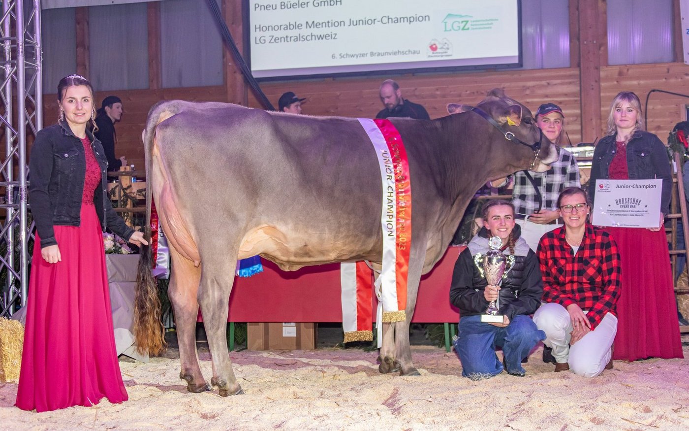 Rangliste Die mit Exzellent 96 eingestufte Jery Tochter Zara von Kevin Züger aus dem Vorderthal setzte sich an der 6. Schwyzer Braunviehschau durch. Die aktuelle Miss der Bezirksviehschau March und Abteilungssiegerin der Bruna 2022 wurden vom Urner Experten Toni Kempf zur Champion gekürt. [IMG 5] Drei Töchter von Glenny Gina auf dem Podest Auf den Ehrenplatz kam Plattenbach BS Glenwood Carola von der GG…
