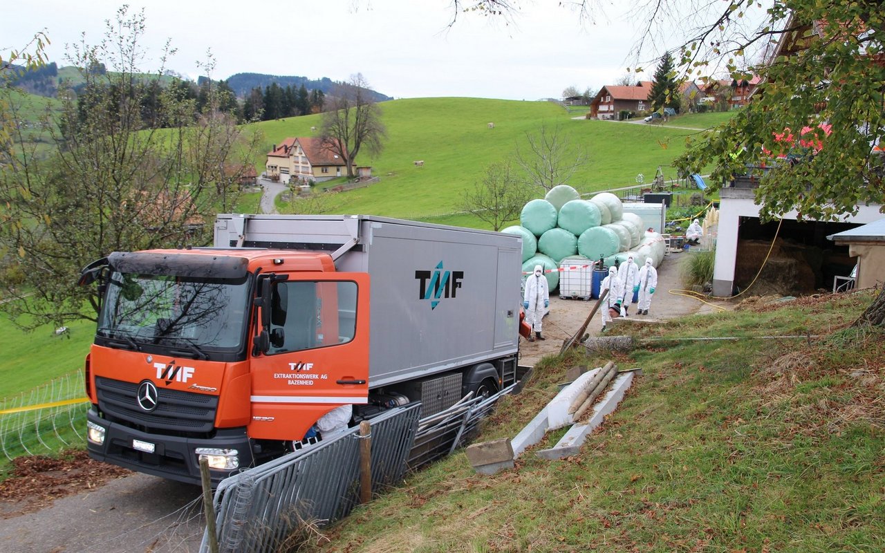 - Dabei wird er vor Ort durch die Tierseuchengruppe unterstützt, die den Betrieb absperrt, beim Handling der Tiere mithilft und das Gehöft anschliessend gründlich reinigt und desinfiziert.