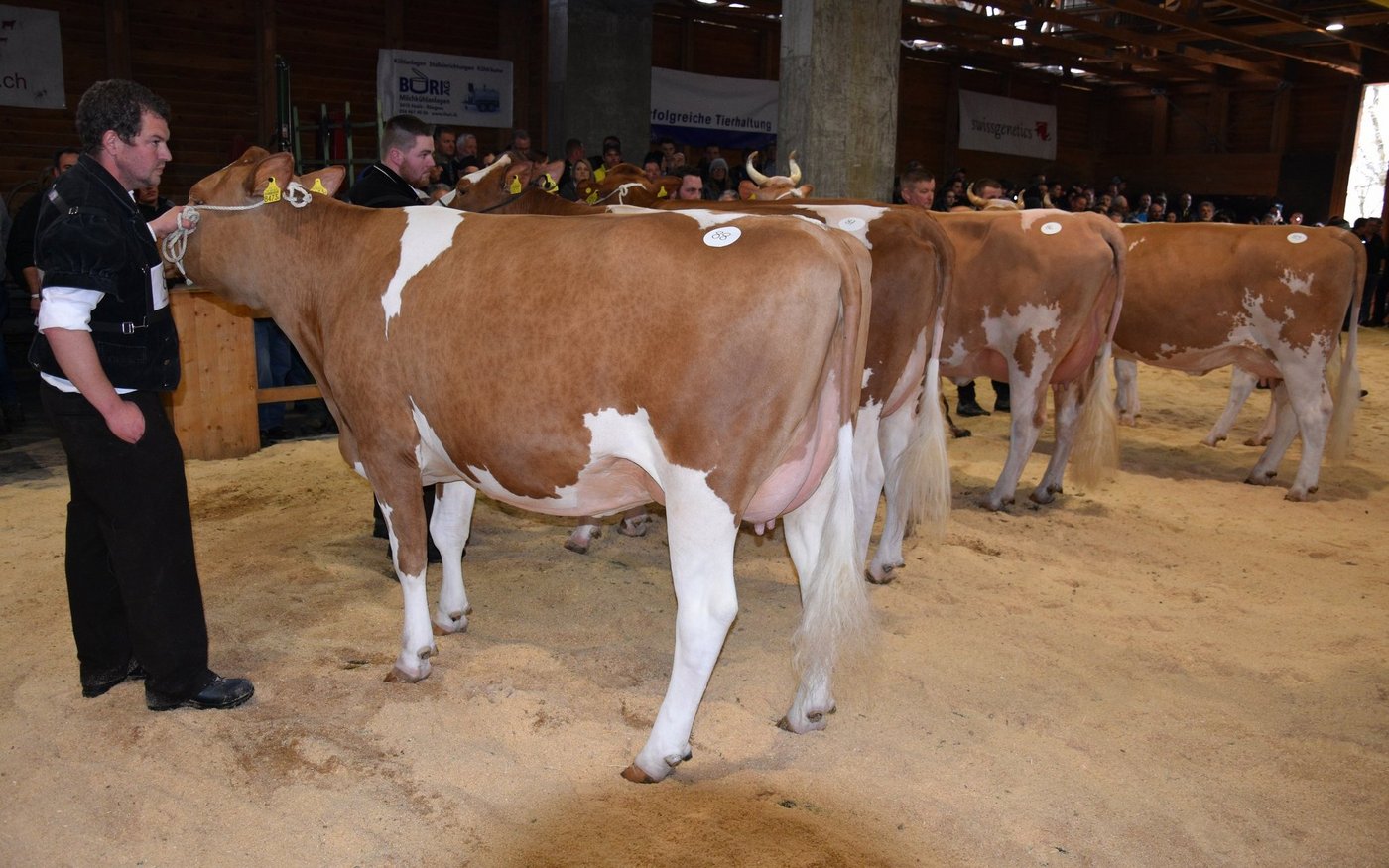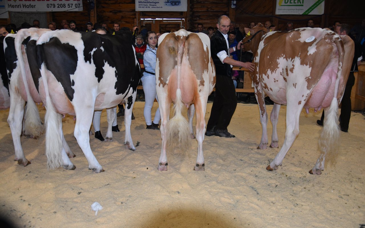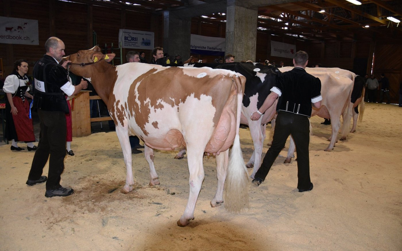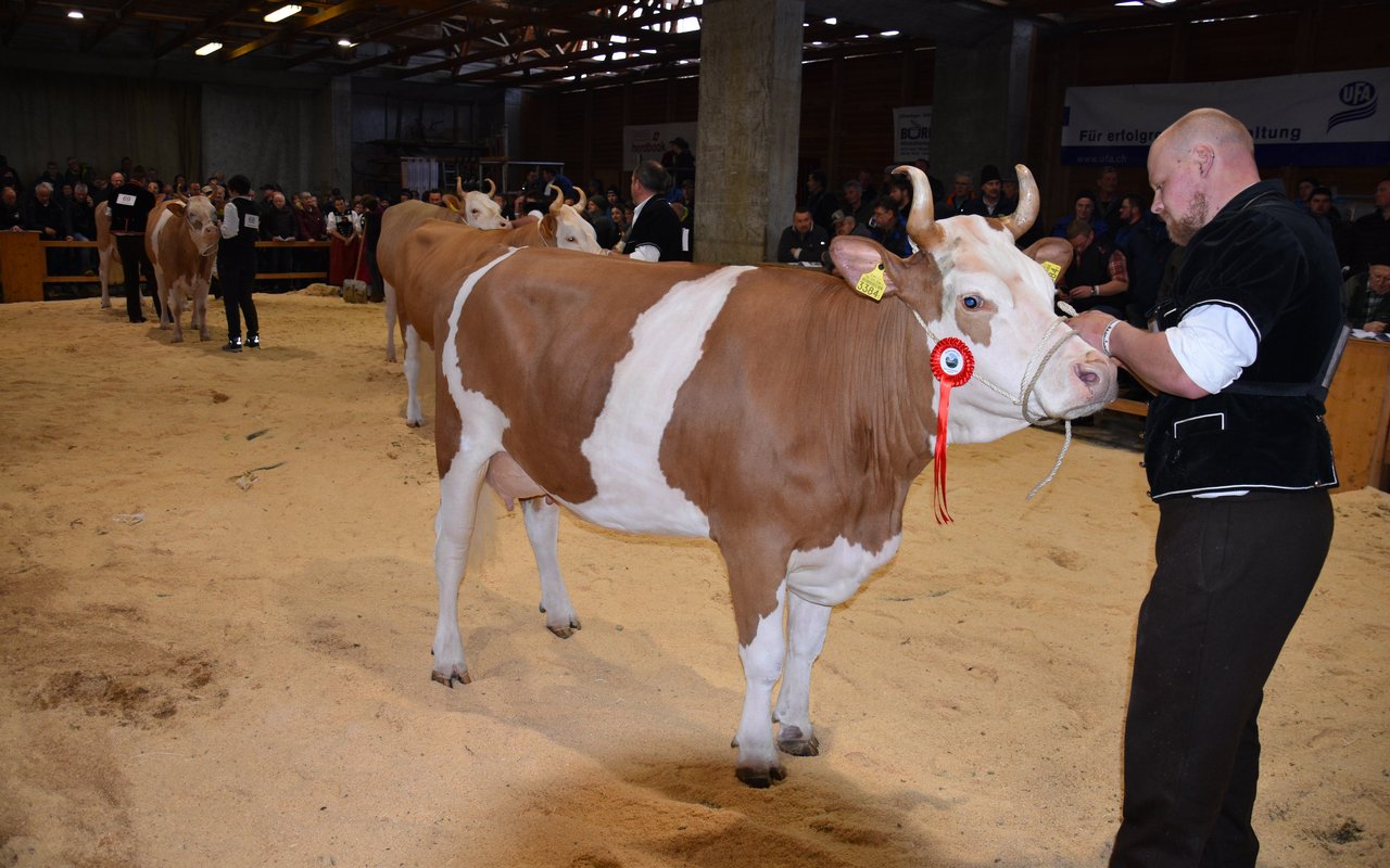 «Ich bekam Hühnerhaut als ich sie zum ersten Mal sah und ich habe immer noch Hühnerhaut, wenn sie vor mir steht», sagt der Richter Christian Zurbrügg bei der Championne-Wahl der Simmentaler- und SF-Kühen am Züchtertreff in Riggisberg vom Samstagnachmittag. Und in der Tat: Die eindrückliche und bekannte Simmentalerkuh Cremo Aurelia von der Familie Schmied aus Guggisberg, liess auch am 21. Züchtertreff nichts anbrennen…