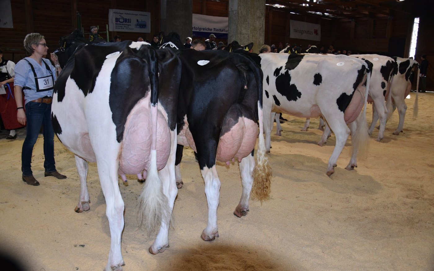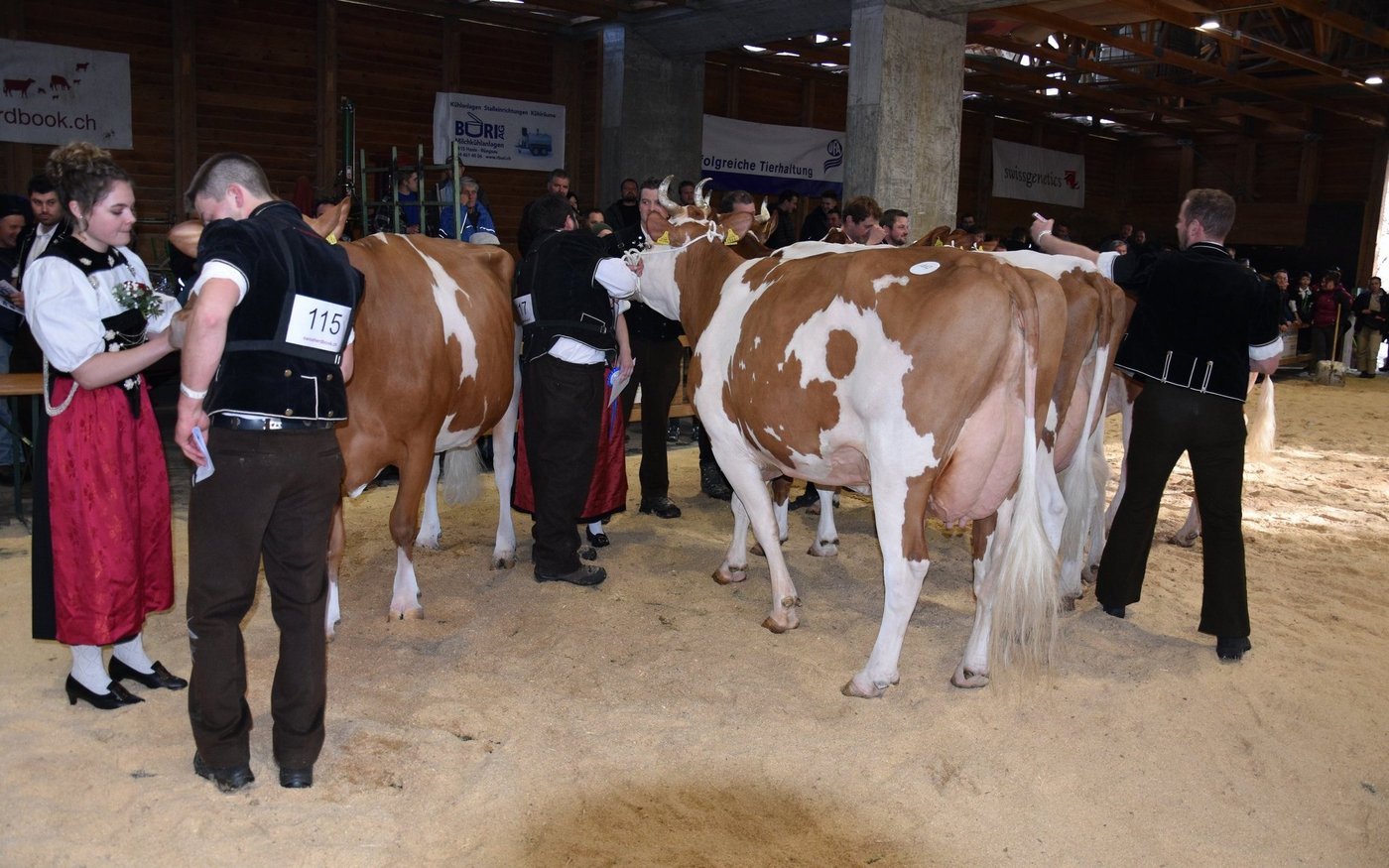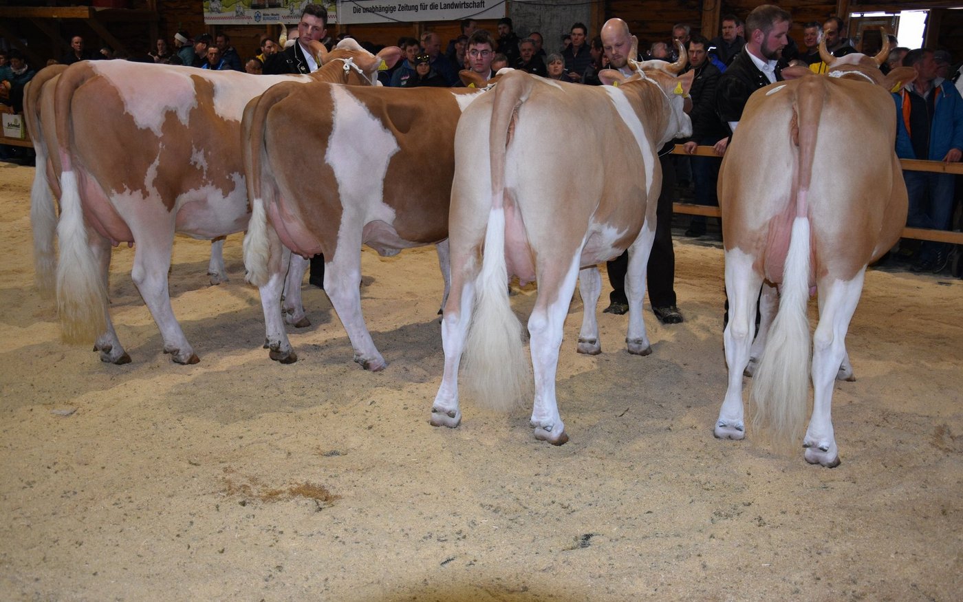 «Ich bekam Hühnerhaut als ich sie zum ersten Mal sah und ich habe immer noch Hühnerhaut, wenn sie vor mir steht», sagt der Richter Christian Zurbrügg bei der Championne-Wahl der Simmentaler- und SF-Kühen am Züchtertreff in Riggisberg vom Samstagnachmittag. Und in der Tat: Die eindrückliche und bekannte Simmentalerkuh Cremo Aurelia von der Familie Schmied aus Guggisberg, liess auch am 21. Züchtertreff nichts anbrennen…