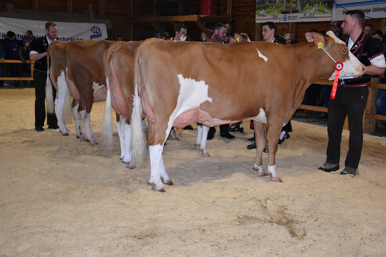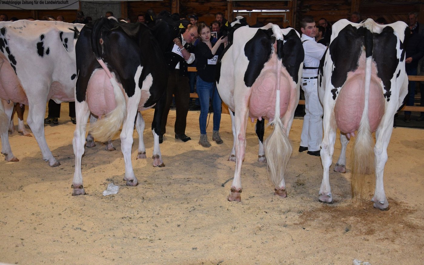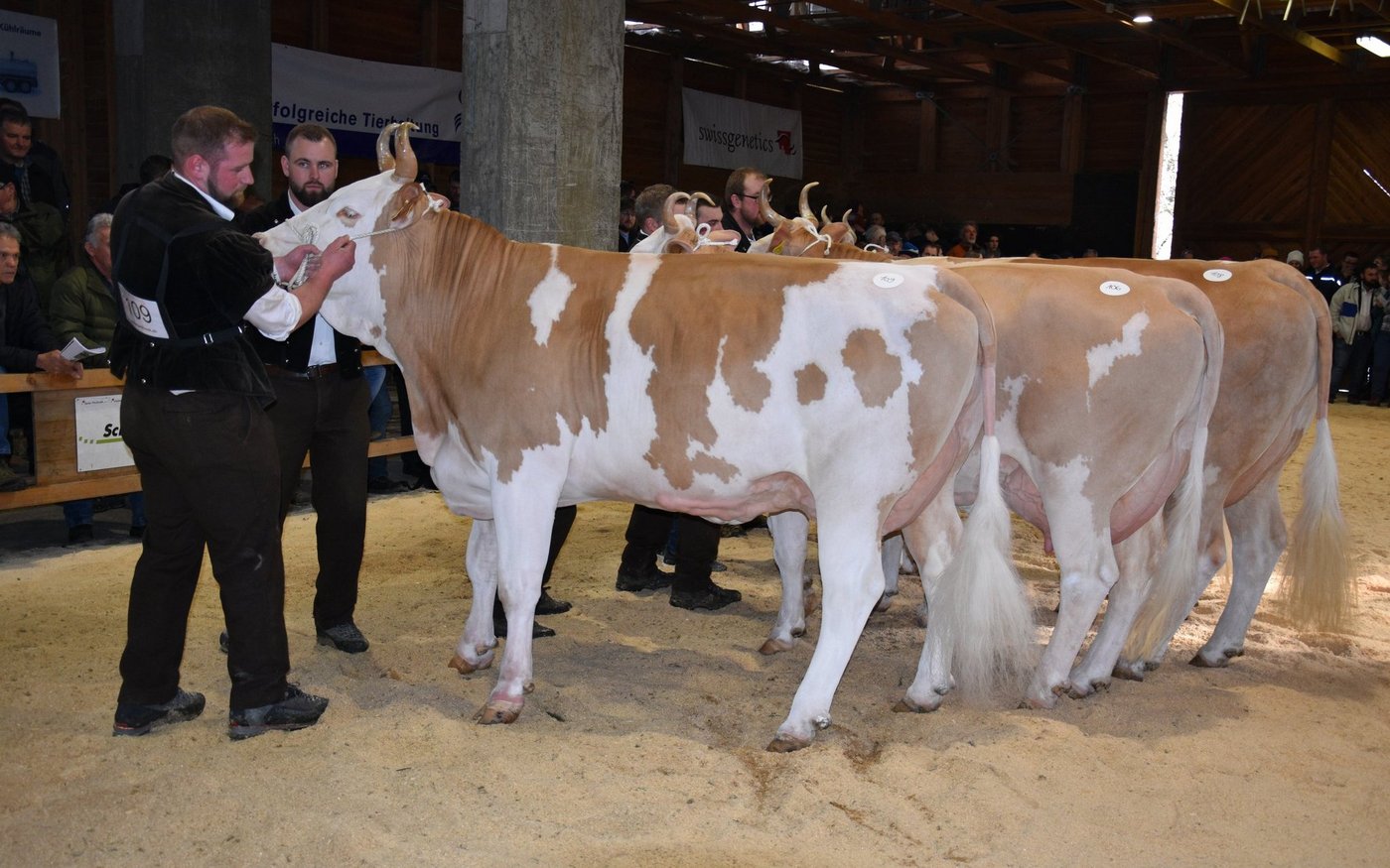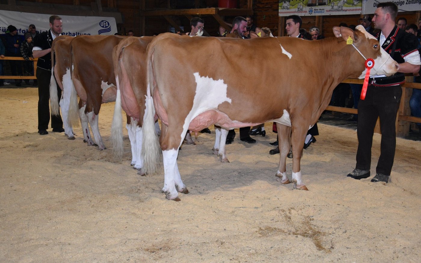 «Ich bekam Hühnerhaut als ich sie zum ersten Mal sah und ich habe immer noch Hühnerhaut, wenn sie vor mir steht», sagt der Richter Christian Zurbrügg bei der Championne-Wahl der Simmentaler- und SF-Kühen am Züchtertreff in Riggisberg vom Samstagnachmittag. Und in der Tat: Die eindrückliche und bekannte Simmentalerkuh Cremo Aurelia von der Familie Schmied aus Guggisberg, liess auch am 21. Züchtertreff nichts anbrennen…