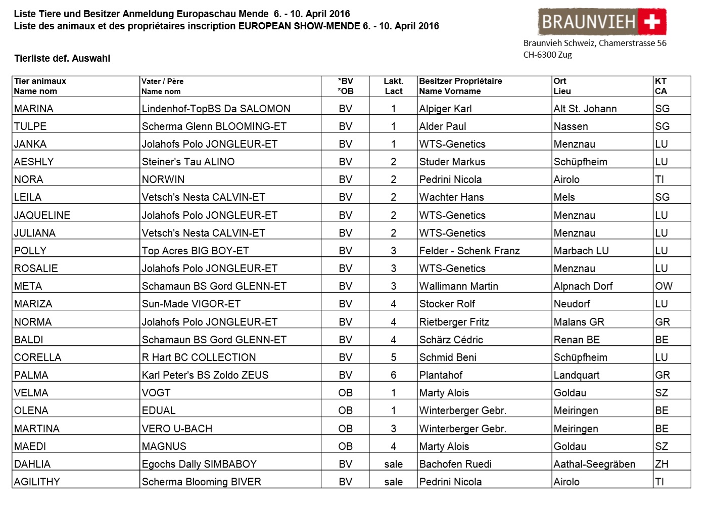 Der Verband Braunvieh Schweiz berichtet auf seiner Facebook-Seite laufend über die Ereignisse in Mende.http://homepage.braunvieh.ch/xml_1/internet/de/application/d436/f127.cfm