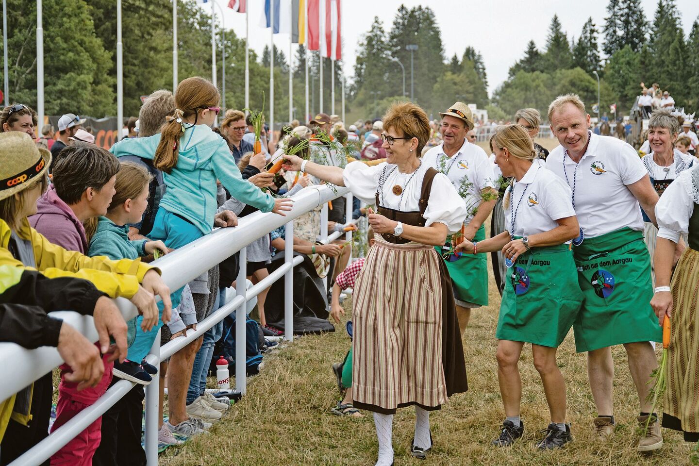 Ihre Füsse spürte Andrea Hochuli zwei Tage später noch, es war ein arbeitsreicher Tag für die Landfrauen. Sie marschierten nicht nur am Umzug mit, sondern schenkten auch den Aargauer Staatswein am Bankett aus. «Wir haben viel gearbeitet, hatten aber riesig Spass dabei», auch die Zusammenarbeit mit den «Gmüeslern» habe super funktioniert. «Der Aargau hat sich sehr gut präsentiert», so der Eindruck von Andrea Hochuli.