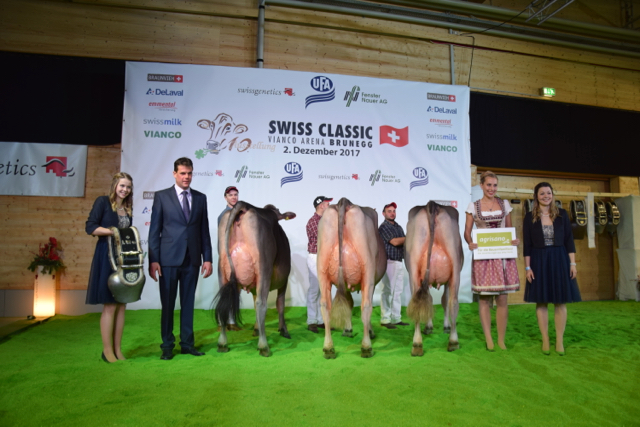 An der Swiss Classic geht es aber heute nicht nur um schöne Kühe. Braunviehkönigin Andrea Furrer gibt im späteren Verlauf des Abends ihre Krone an ihre Nachfolgerin ab. Zur Wahl stellen sich Andrina Peter aus Lienz SZ, Anita Krummenacher aus Root LU, Antonia Kälin aus Willerzell SZ, Patrizia Hobi aus Flums GR und Vanessa. Diese fünf jungen Damen haben sich dem Publikum vorgestellt und in jeder Abtleilung läuft eine von ihnen voraus.