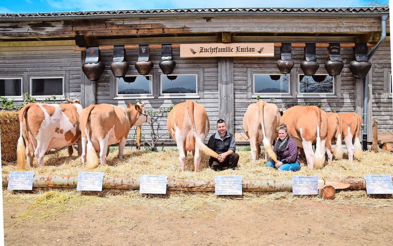 Für Christian und Laura Wüthrich aus Les Prés-de-Cortébert im Berner Jura war es die erste Zuchtfamilienschau, die sie zeigen konnten. Ihre Stammkuh Enzian präsentierte an der Schau sechs Töchter. Der schön hergerichtete Schauplatz war ein richtiger Augenschmaus. Die reine Simmentalergruppe überzeugte mit ihren hervorragenden Typeigenschaften und ihren starken Fundamenten. [IMG 1] Die beiden Richter Jürg Brönnimann…