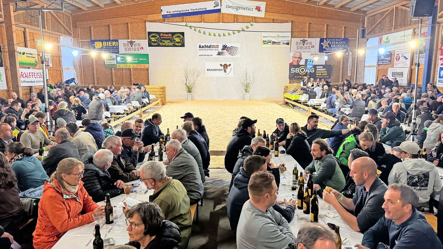 David Ackermann, OK-Präsident der IG Braunvieh Thurgau Bodensee, zeigte sich sichtlich zufrieden mit dem Anlass. Etwa 600 Besucherinnen und Besucher füllten die Halle – die Sitzplätze auf den Festbänken reichten nicht für alle, viele verfolgten das Geschehen im Stehen. Der Stimmung tat das keinen Abbruch.