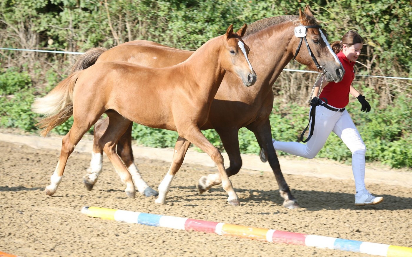 Aus dem gleichen Stall von Renate Schöni und Ueli Gerber kommt das zweitklassierte Hengstfohlen «Lars» (Nahel des Aiges), punktiert mit 8/8/7. Der dritte Rang gehörte Stutfohlen «Thosta-Noelia» (Nahel des Aiges) von Thomas und Jasmin Staub aus Thörigen (8/8/6). Auf Rang vier durfte Barbara Keller-Hasler aus Derendingen zu ihrem Stutfohlen «Elenor» (Ethan) gratuliert werden (8/7/7). Mit 7/7/8 punktiert wurde Hengstfohlen «Lenox» (Loxy de la Vieille) von Christoph Räuftlin aus Selzach.