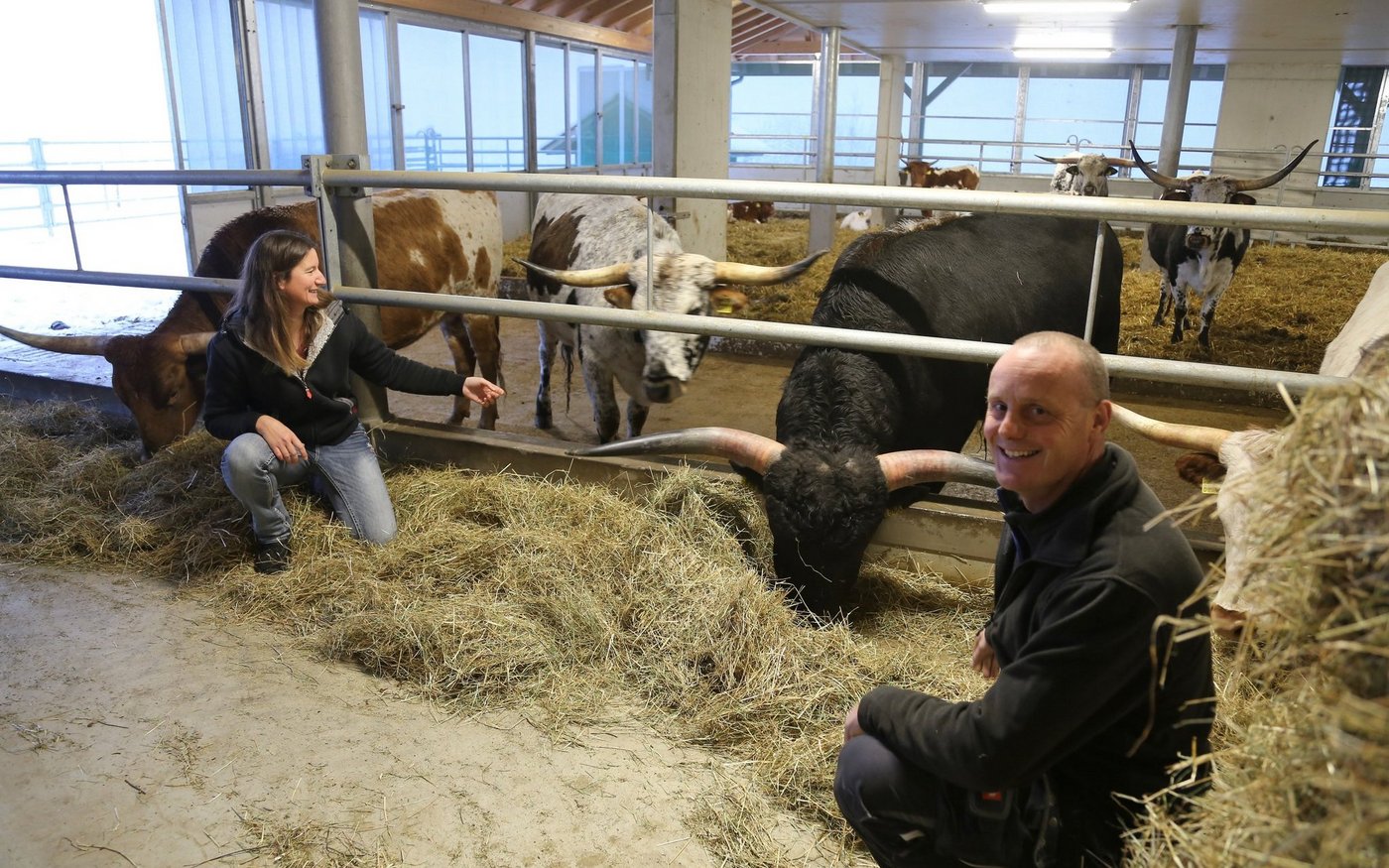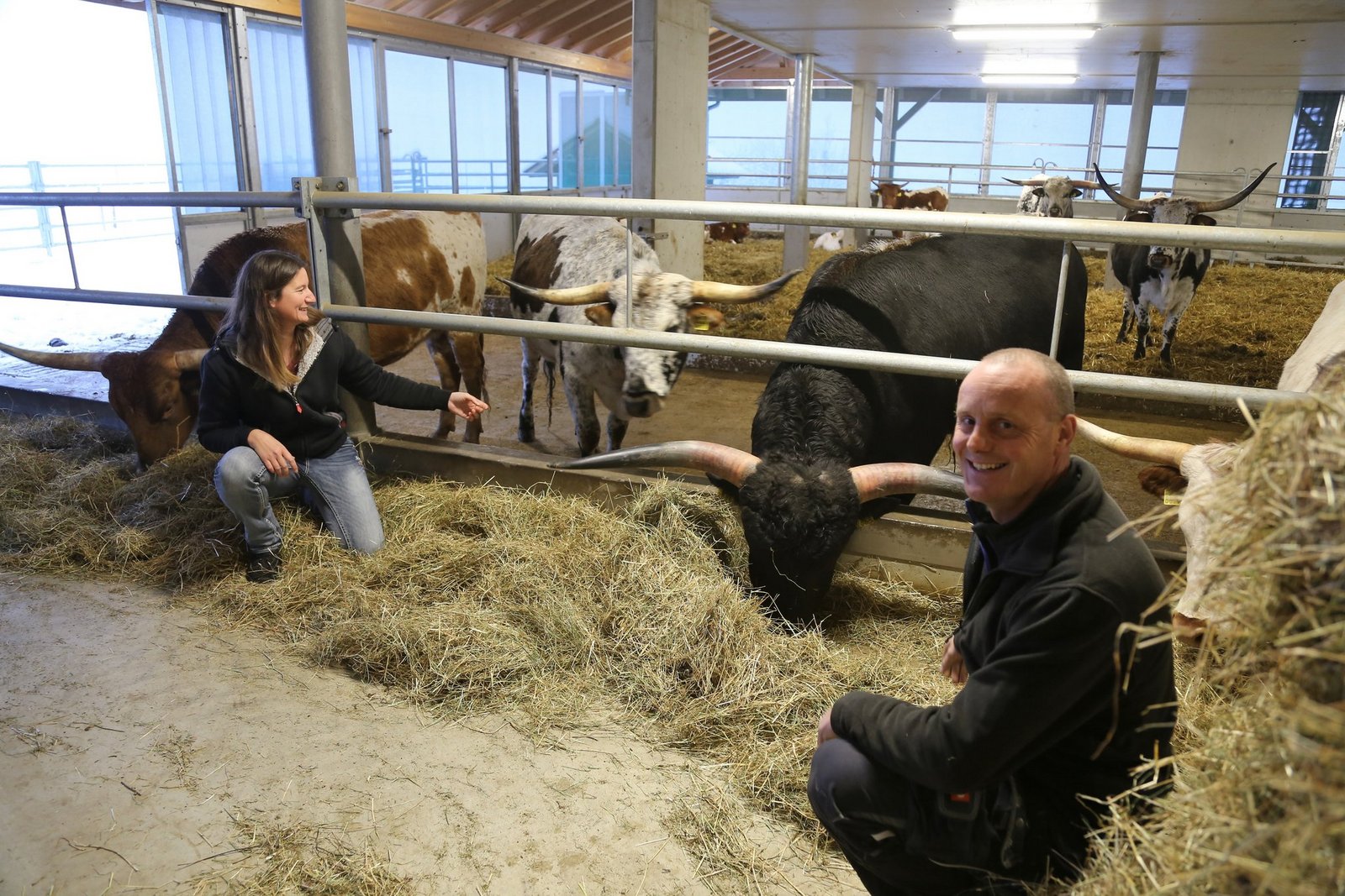 Vor zwei Jahren haben Susanne Sommer und Jürg Keller den Stall auf dem Moosackerhof mit den Texas Longhorns quasi wiederbelebt. «Mein Vater hat auf dem Hof noch Milchwirtschaft und Ackerbau betrieben, dann übernahmen ich und mein Bruder den Betrieb und stellten auf Rindermast um», erzählt Jürg Keller. Danach verpachteten sie das Land allerdings für 10 Jahre und der Stall stand leer – bis schliesslich der Gedanke aufkam, das Land wieder selbst zu bewirtschaften. «Wir fanden, dass es doch schade ist, wenn man eigenes Land hat und dieses nicht selbst nutzt und bewirtschaftet», ergänzt Susanne Sommer.