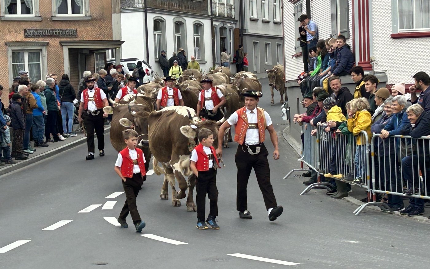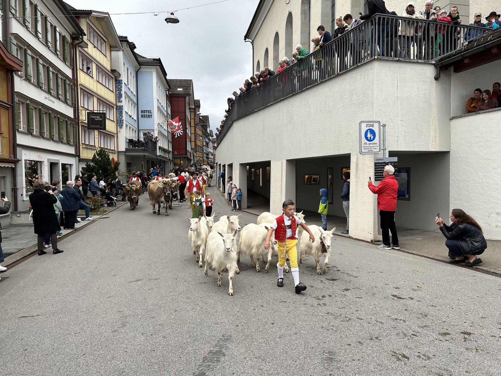 Unzählige Schaulustige säumten den Strassenrand, mittendrin Bundesrat Guy Parmelin mit Landeshauptmann Stefan Müller. Es war «Vechschau» in Appenzell. Von drei Strassenzügen aus führten die Sennen in Tracht und mit Naturjodel-Rugguseli ihre Tiere zum Brauereiplatz. Voraus ging in vielen Fällen ein Ziegenbub mit einer Schar Appenzeller Ziegen.