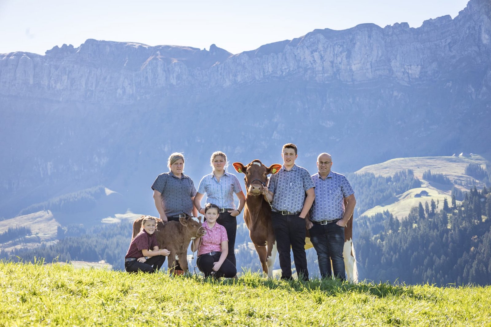 Wir treffen die Familie Stucki auf ihrem Betrieb auf 1085 m ü. M. in der Bergzone II in Schangnau. Das Wohnhaus liegt etwas abseits von der Scheune, mit grandiosem Blick auf den Hohgant. Alle sitzen am Küchentisch, erzählen, warum ihr Herz für die Viehzucht schlägt. «Wir leben hier vom Verkauf von Zuchtvieh», sagt Ruedi Stucki. Und wenn es dazu noch eine schöne Kuh ist, habe man auch nichts dagegen, das zahle sich auch im Portemonnaie aus.