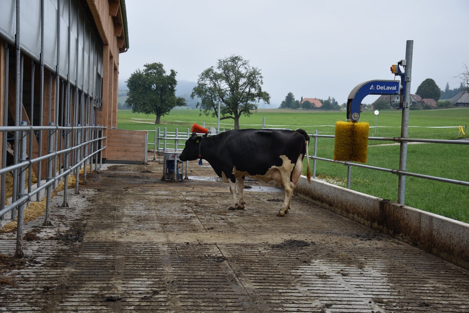 Schon von weit her, sieht man ihn, den neuen DeLaval-Normstall von der Familie Sandra und Samuel Haslebacher in Sumiswald BE. Der Milchviehstall, mit Melk- und Mistroboter, wurde nicht nur geplant von der Firma DeLaval, sondern er ist auch ausgerüstet mit einem DeLaval VMS V300 Melkroboter und mit einem DeLaval-Mistroboter.