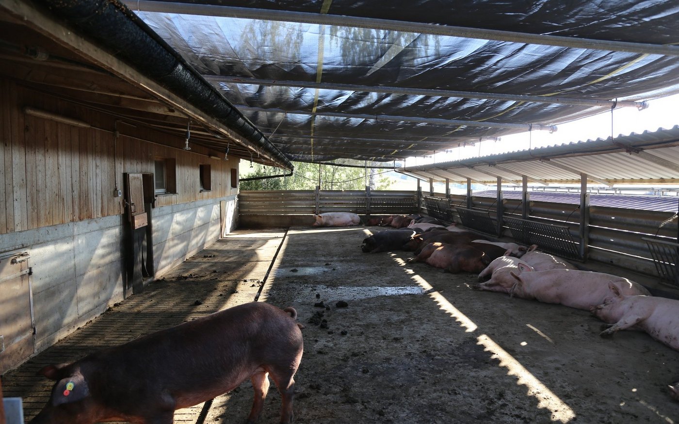 Der Auslauf ist für die Schweine das ganze Jahr offen, während die Weide im Frühling, Sommer und Herbst jeweils für vier bis sechs Stunden pro Tag zugänglich ist. Die Weide ist für die Sauen ein Privileg. «Man sieht Schweine sonst selten draussen auf der Weide», sagt Samuel Schwab. Vor allem die Duroc-Schweine geniessen die Freiheit. Dadurch, dass sie sehr robust sind, sind sie auch bei kälteren Temperaturen im Freien. Wenn es regne oder schneie, seien die Durocs am ehesten draussen, während die anderen lieber im Stall bleiben.