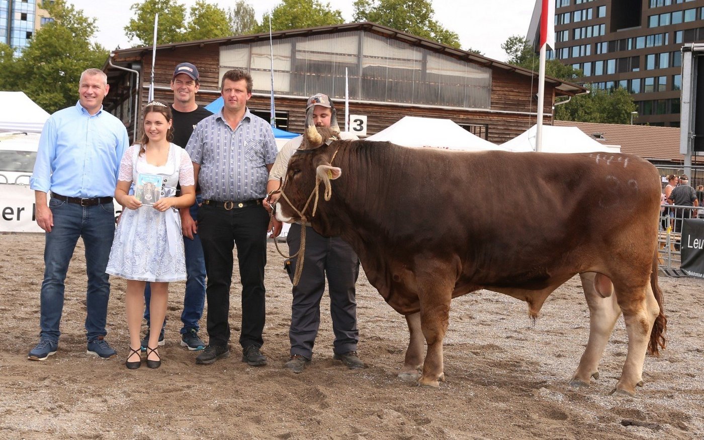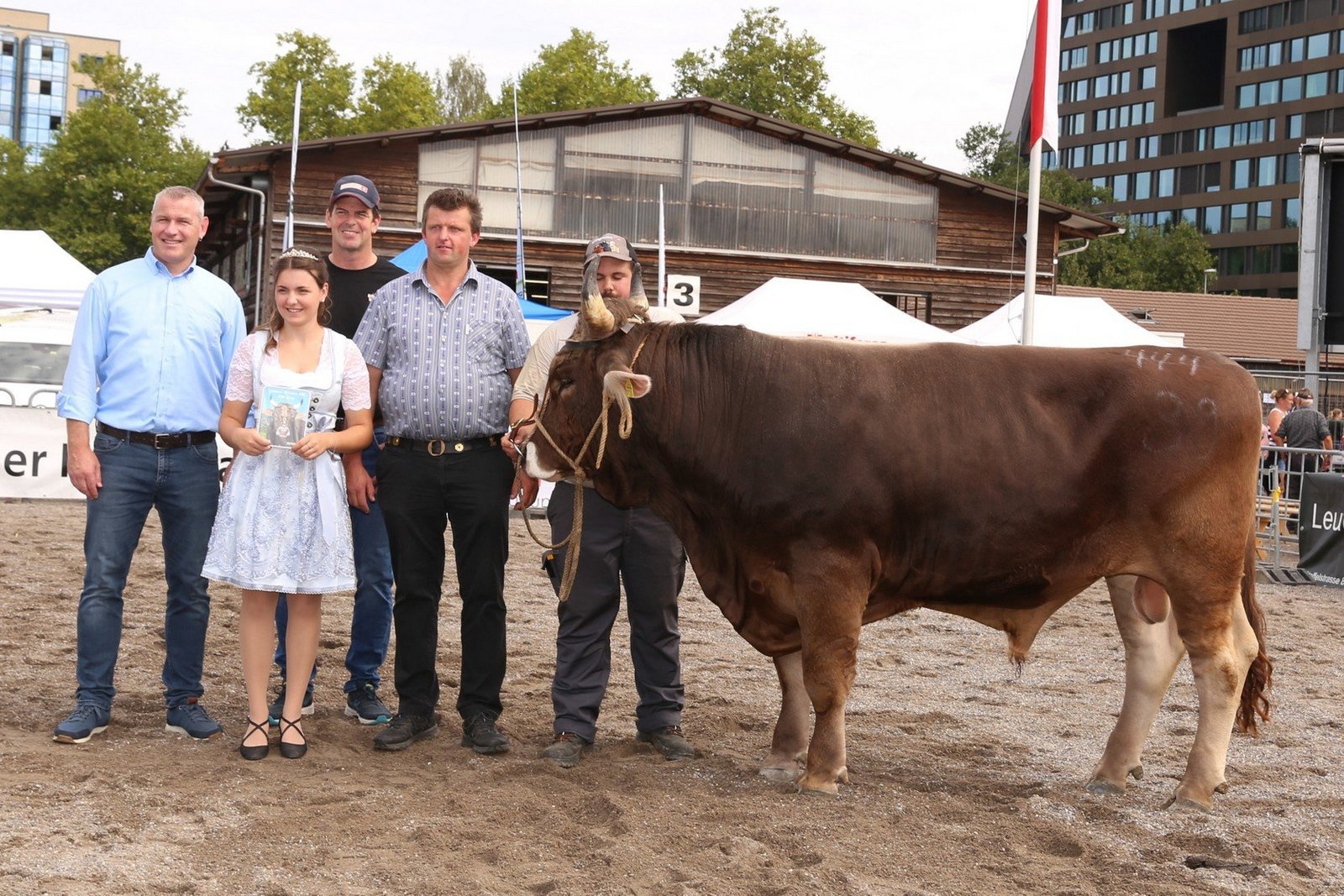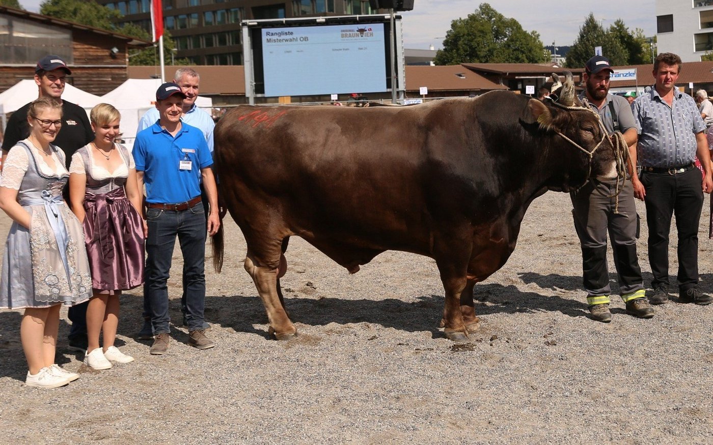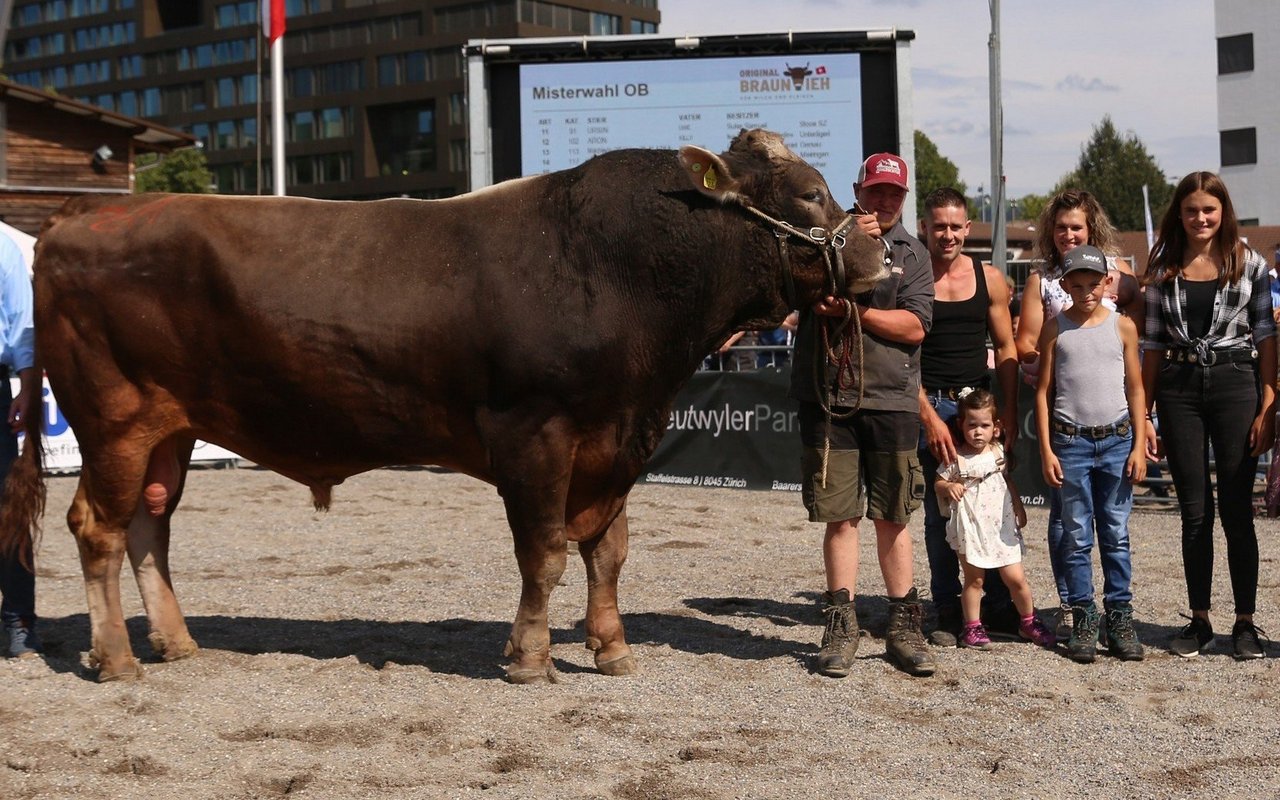 Rangliste Ihre Routine und jahrelange Schauerfahrung waren dem OB-Zuchtstier Einar von Martin Schrepfer aus Wald ZH und dem BS-Muni Gracer von Kevin Züger, Vorderthal SZ anzusehen. Die beiden Titelverteidiger vom Zuger Stierenmarkt schritten auch dieses Jahr stolz und ruhig durch den Ring. Beide präsentierten sich erneut in beneidenswerter Form und konnten ihre Titel damit verdient verteidigen. [IMG 8] Grosser Tag…