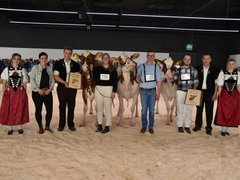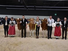 Swiss Fleckvieh: Miss: Oehrli’s Pedro Pierina, Ferdinand Oehrli, Teuffenthal; Reserve: Hohgantranch Elias Estelle, David Mani, Schwenden; Schöneuter: Kilian Haita, Hansueli und Bruno von Känel, Frutigen.